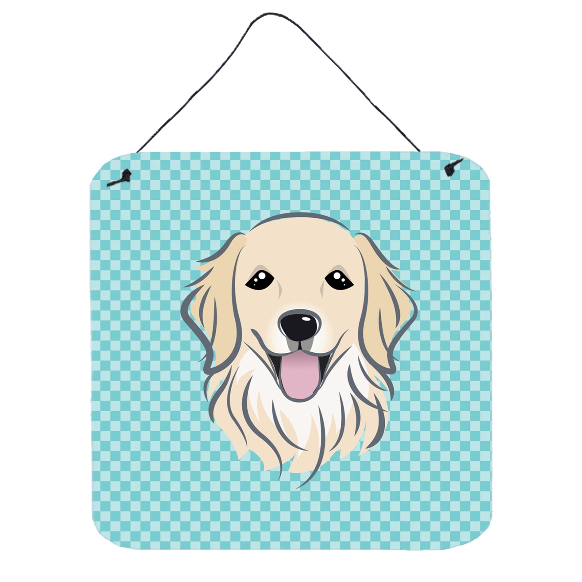 'Caroline's Treasures BB1143DS66 Checkerboard Blue Golden Retriever Wall or Door Hanging Prints 6 x 6''''''