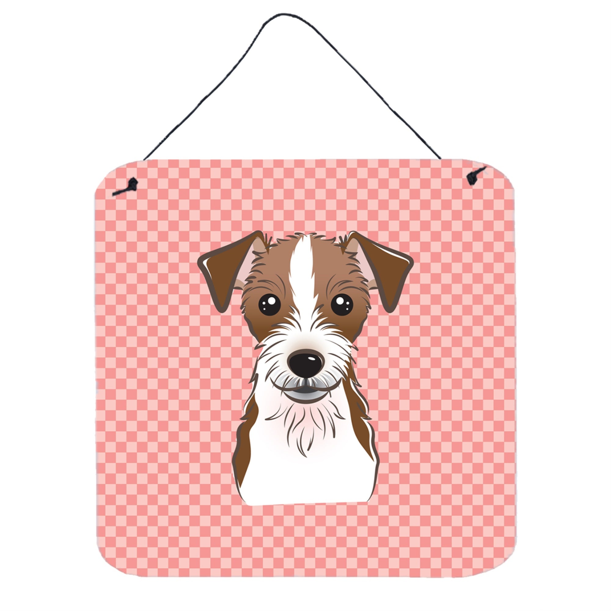 'Caroline's Treasures BB1202DS66 Checkerboard Pink Jack Russell Terrier Wall or Door Hanging Prints 6 x 6''''''
