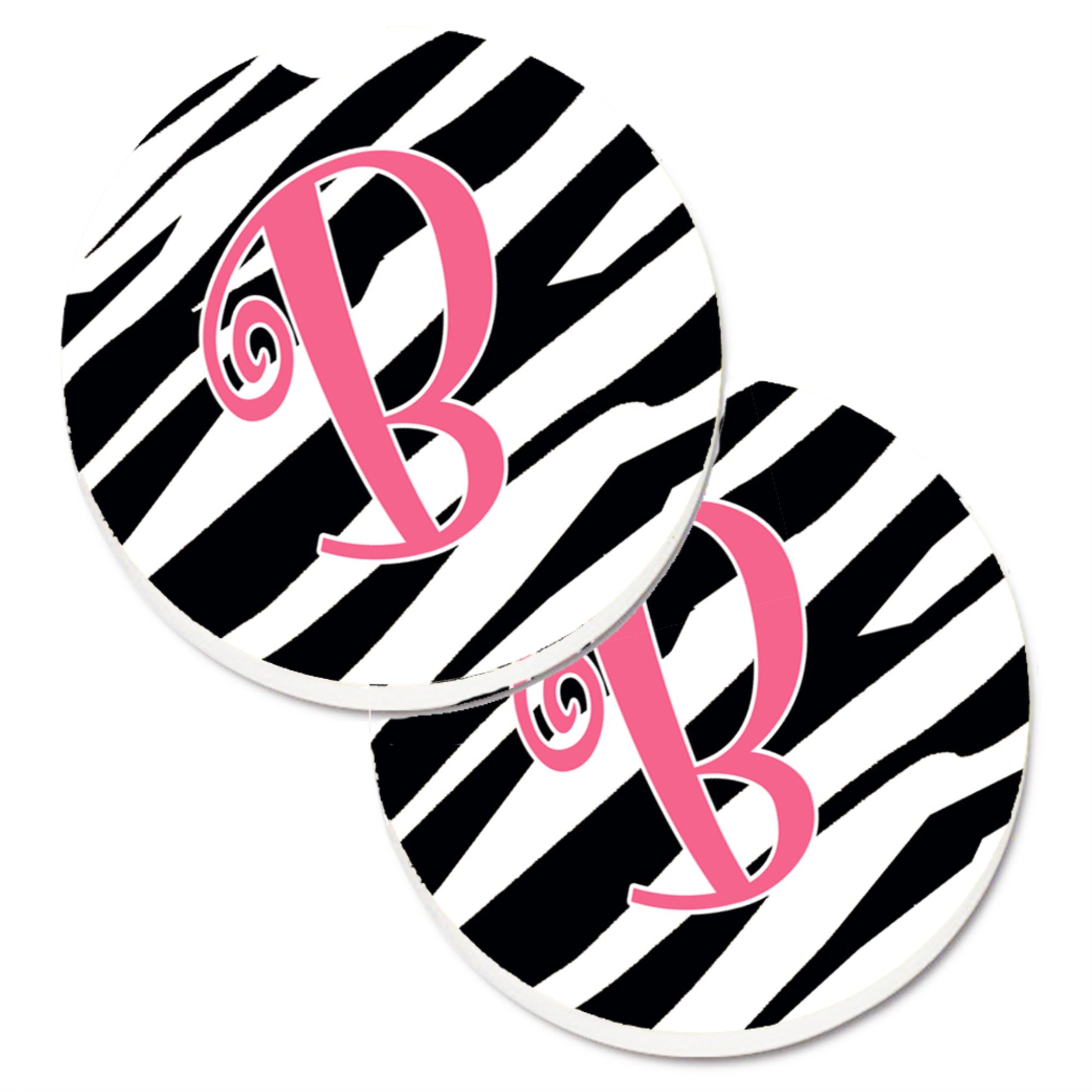 'Caroline's Treasures Monogram Initial B Zebra Stripe & Pink Set of 2 Cup Holder Car Coasters CJ1037-BCARC 2.56 Multicolor''