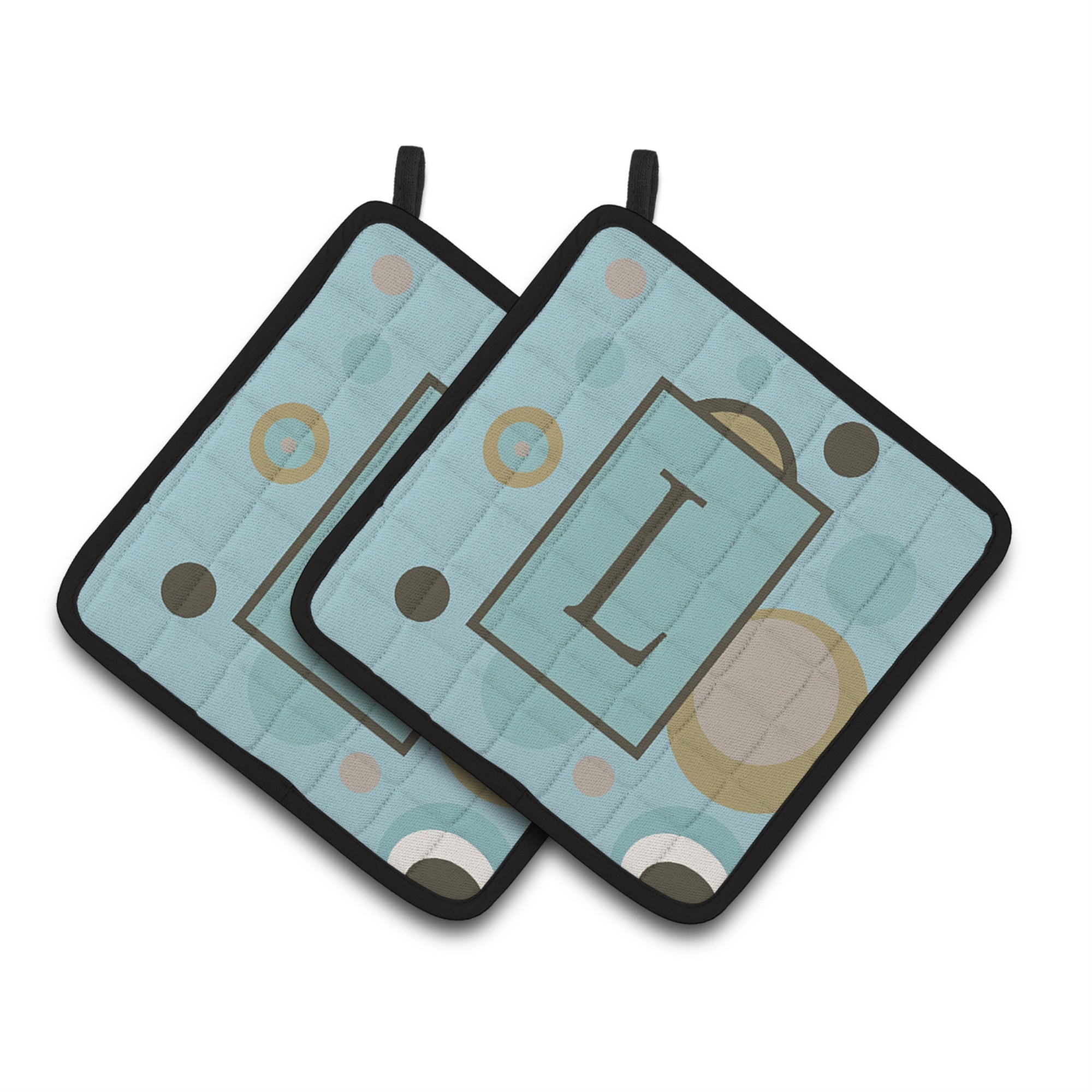 'Caroline's Treasures Monogram - Initial L Blue Dots Pair of Pot Holders CJ1013-LPTHD 7.5HX7.5W Multicolor''