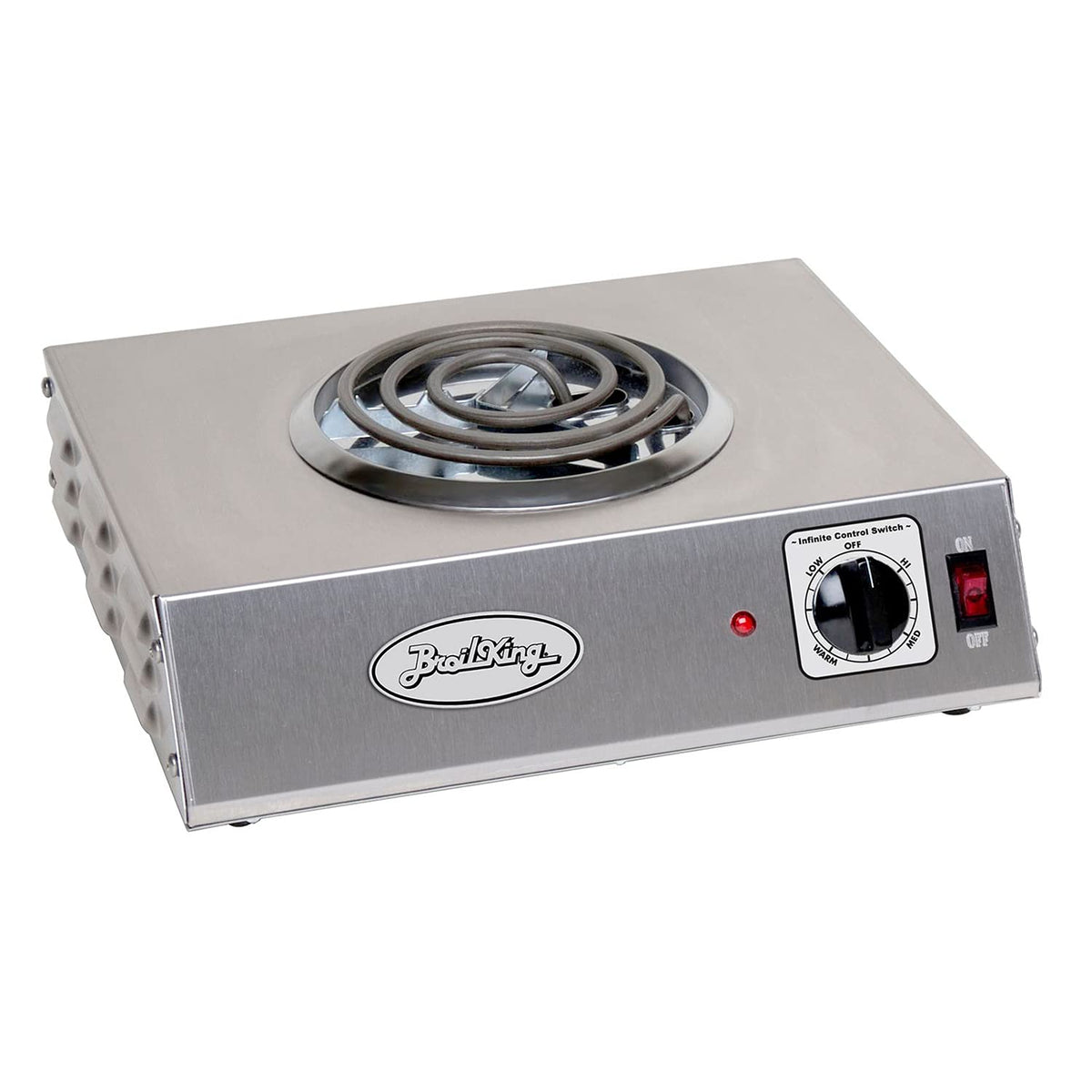 • Q: Can this hot plate be used for large stock pots? A: No, the BroilKing CSR-1TB is not ideal for giant stock pots or huge skillets, as it works best with smaller cookware.