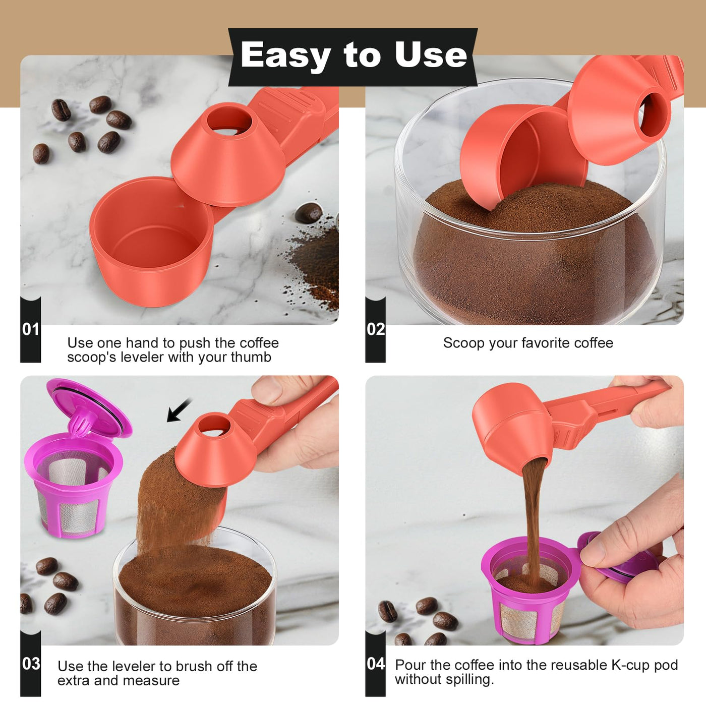 Coffee Scoop & Funnel for Reusable K Cup Refillable Coffee Pods, Coffee Measuring Spoon 2 Tablespoon Capacity, Scoop with Funnel