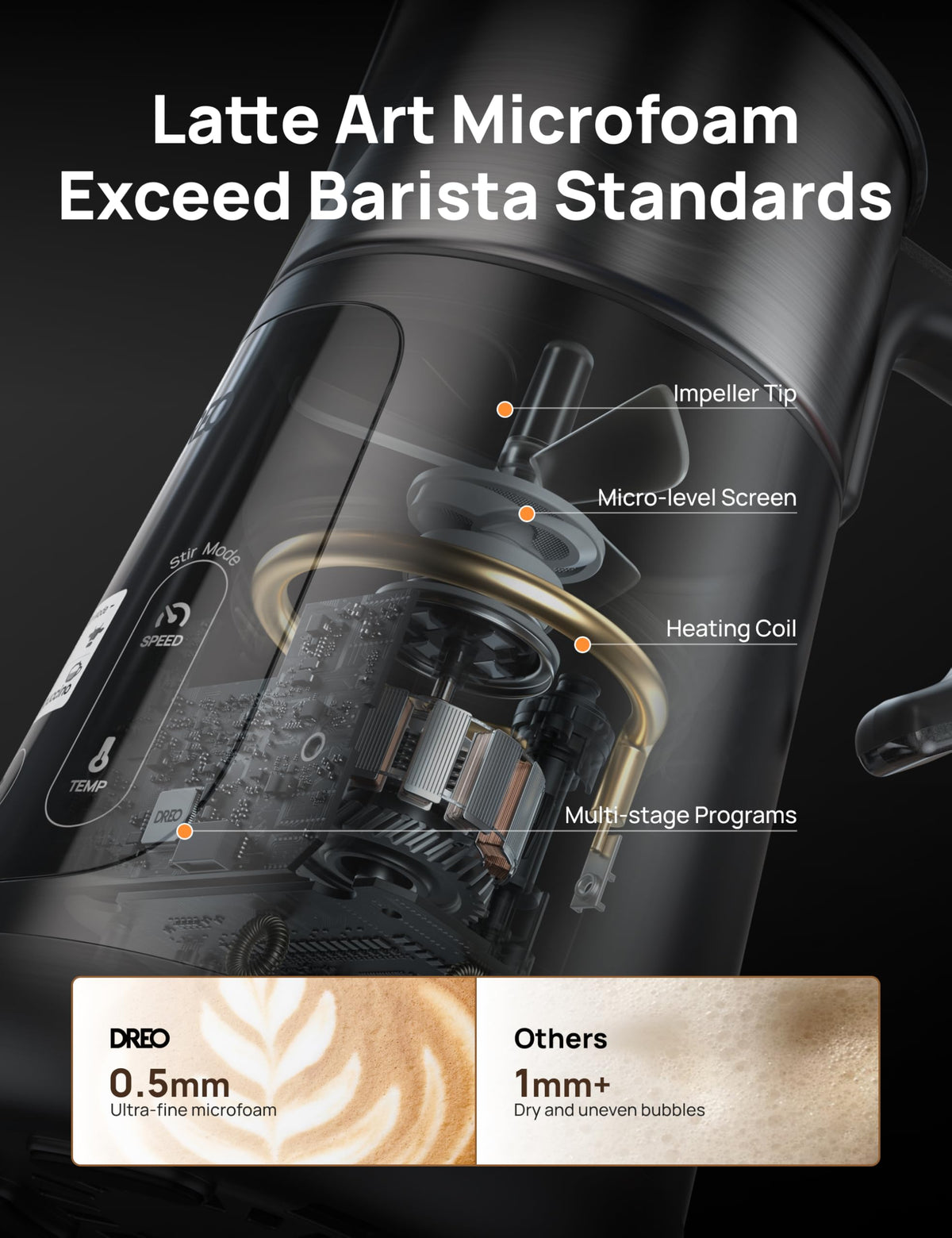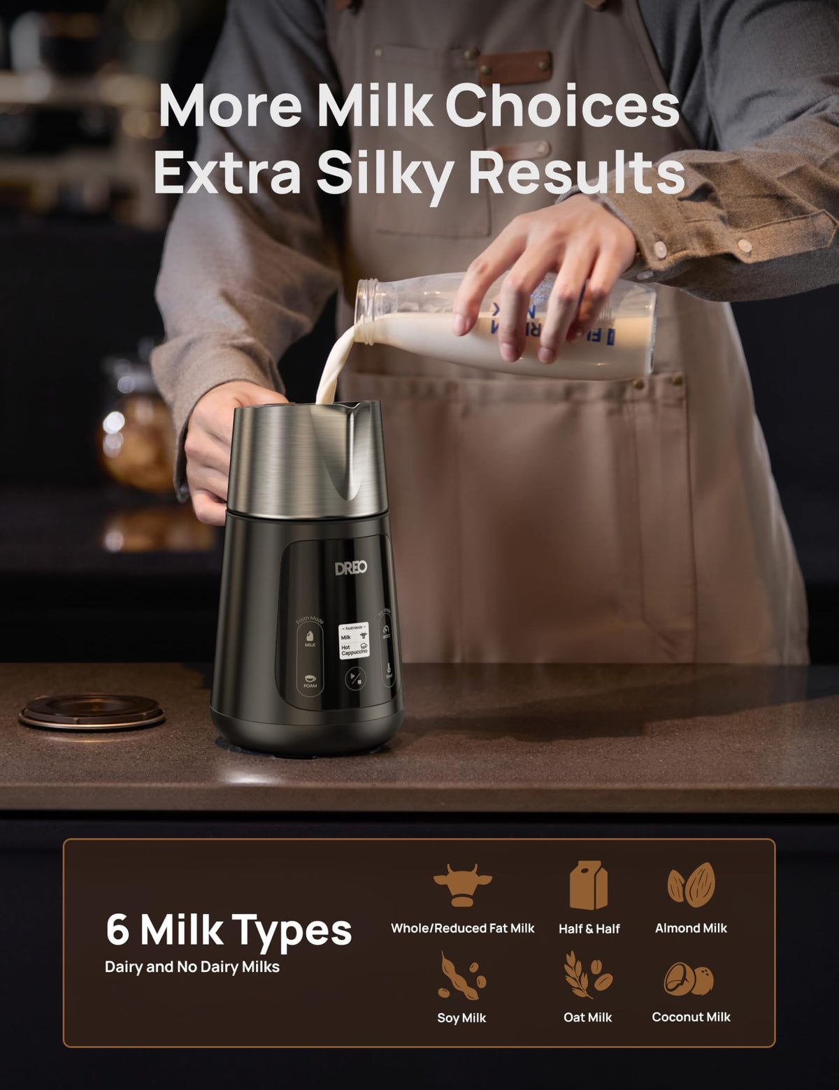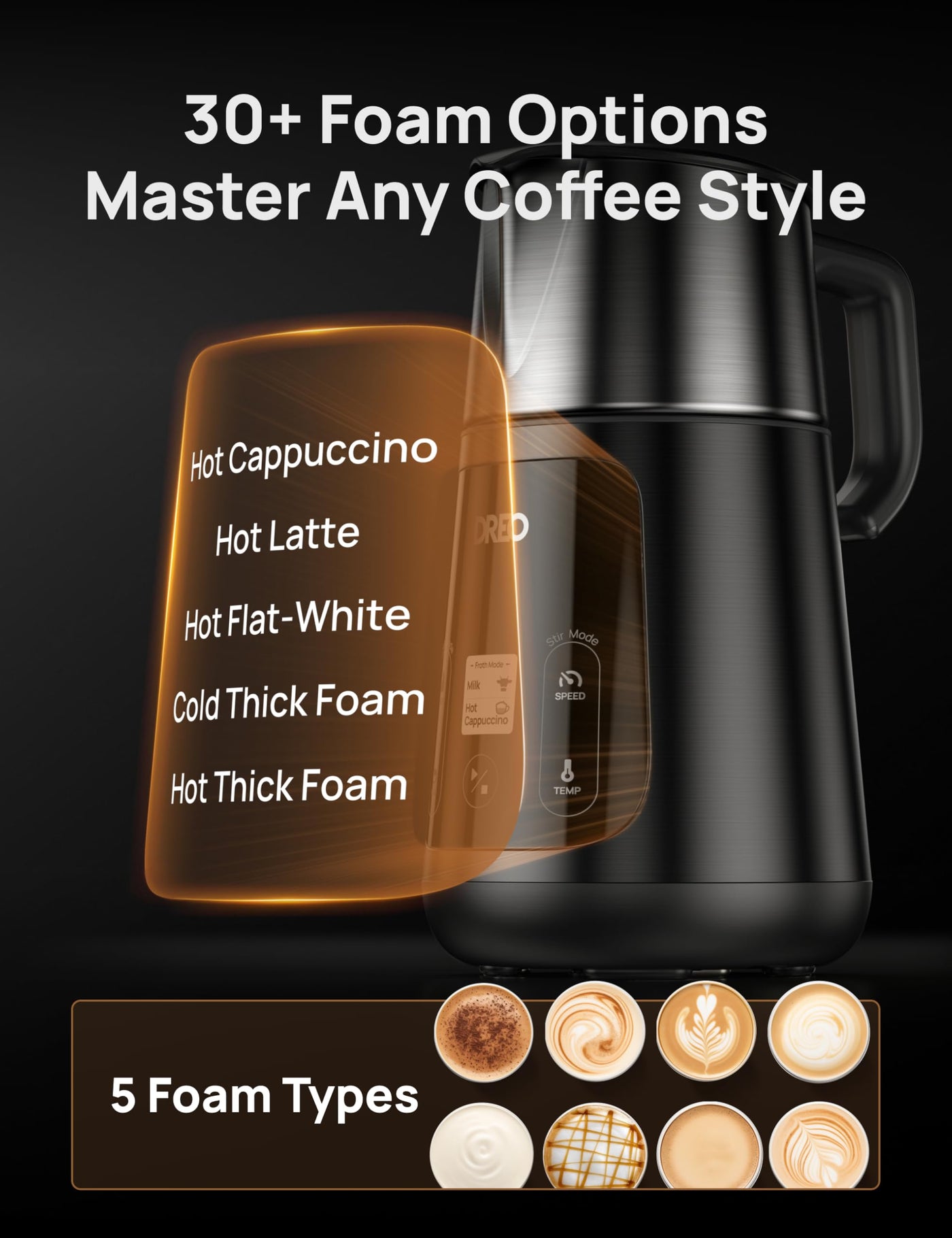 Dreo Milk Frother, All-in-1, 27oz/800ml Hot/Cold Electric Foam Maker for Coffee, Latte Art-level Microfoam, Automatic Milk Warme