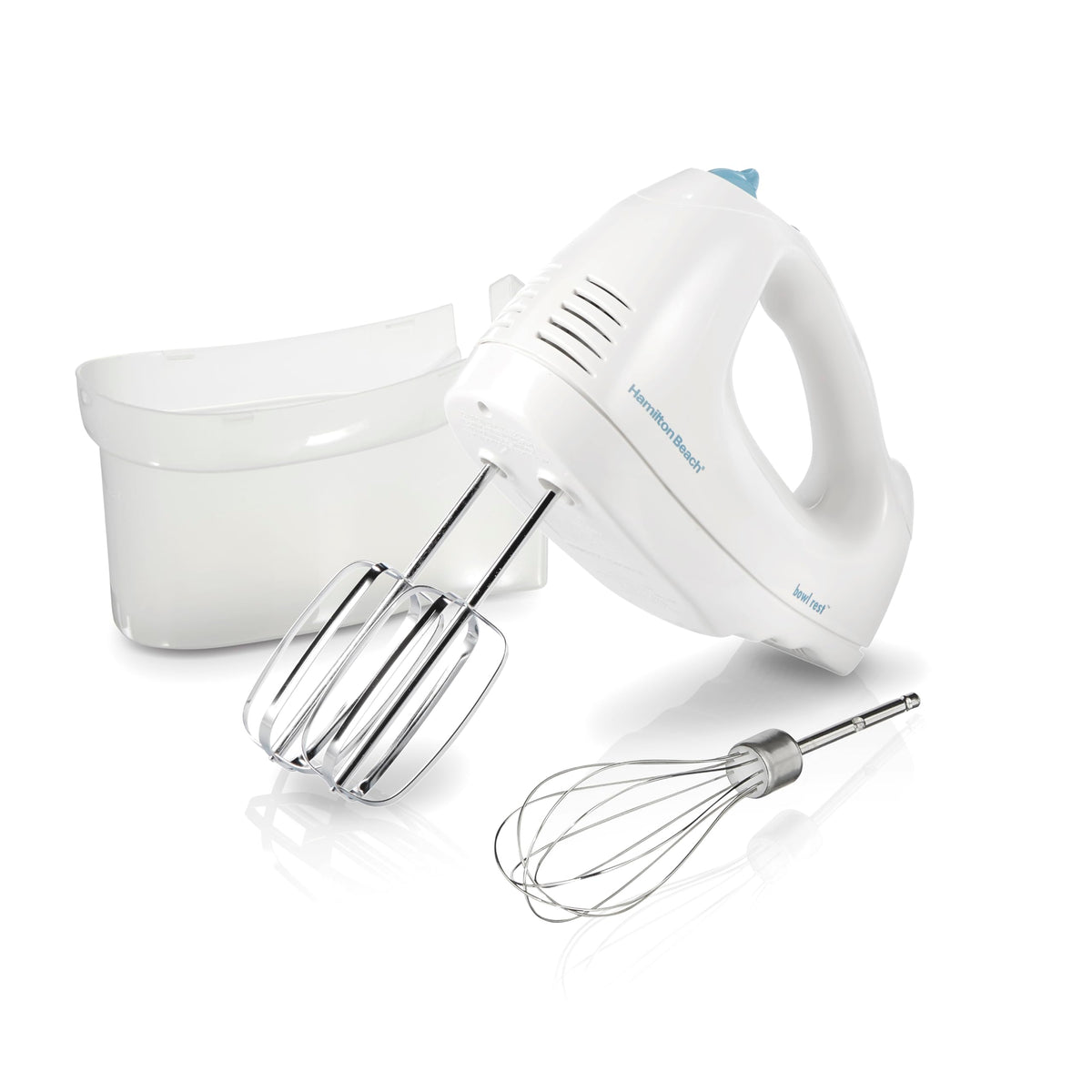 Hamilton Beach 6-Speed Electric Hand Mixer With Whisk, Traditional Beaters, Snap-On Storage Case, 250 Watts, White