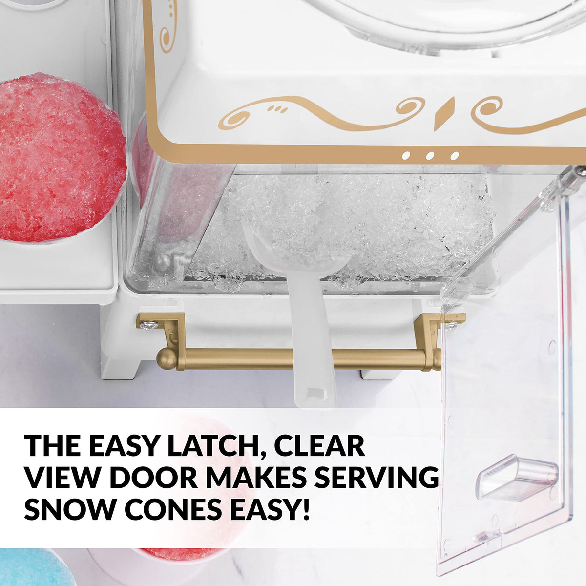 Nostalgia Vintage Countertop Snow Cone Machine - Slushie Machine - Shaved Ice Machine and Crushed Ice Maker - Makes 20 Icy Treats Includes 2 Reusable Plastic Cups & Ice Scoop - White