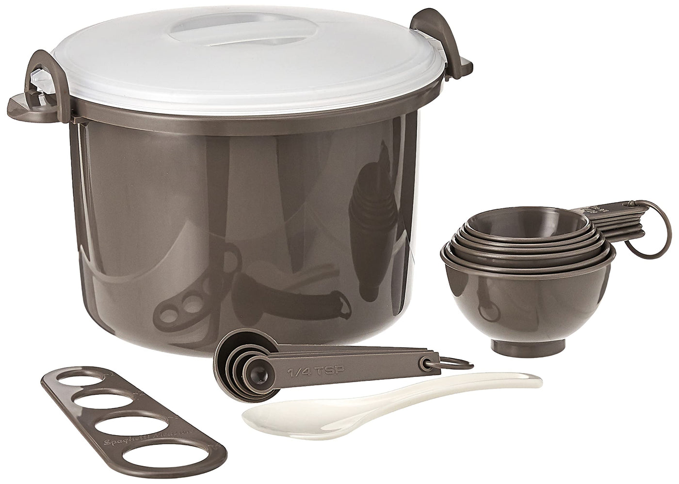 Prep Solutions 17 Piece Set Microwaveable Rice And Pasta Cooker With 12 Cup Capacity And Locking Lid Great For Rice, Pasta, And