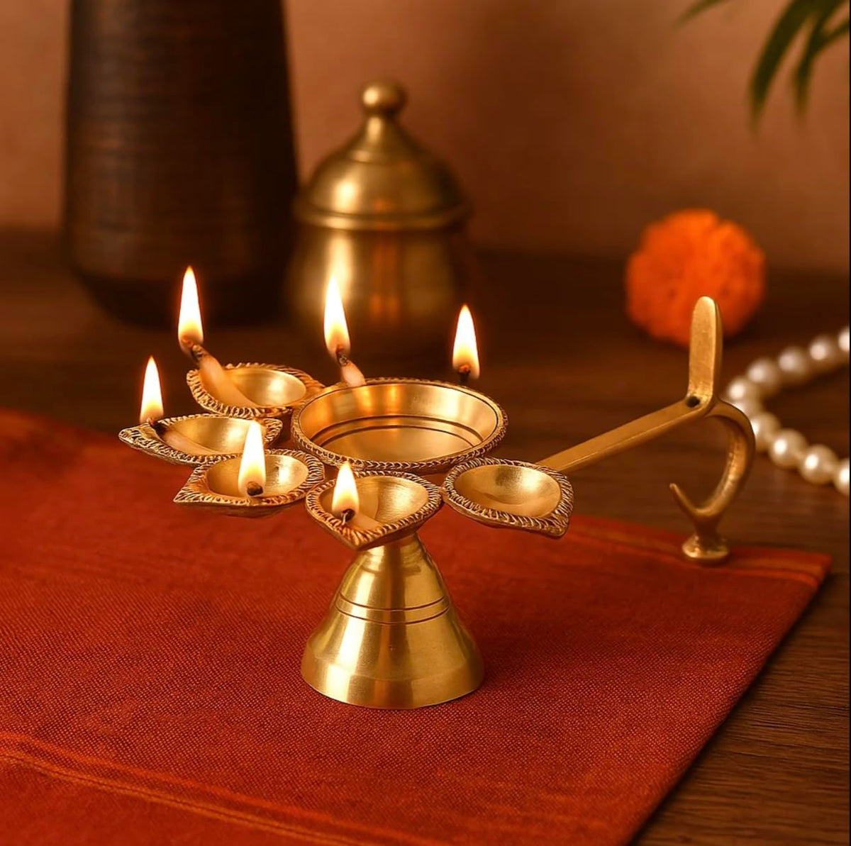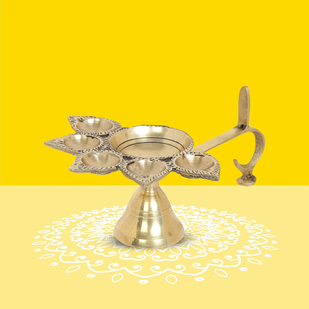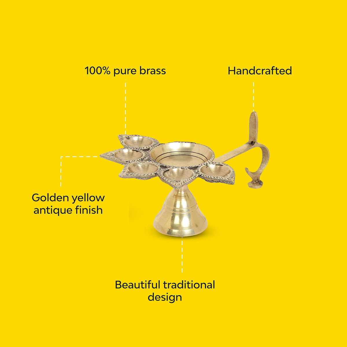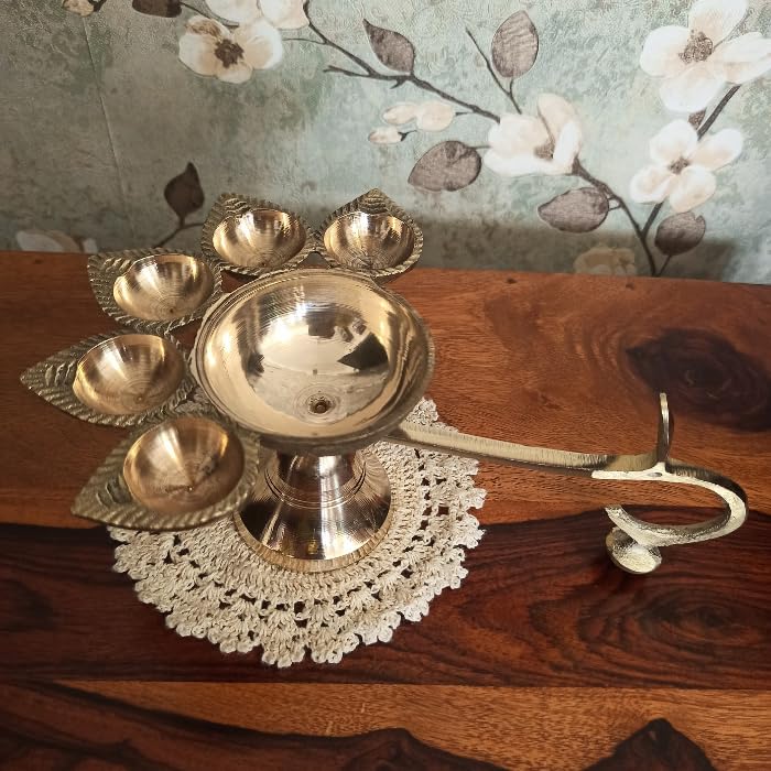 10Club Panch Aarti 100% Pure Brass Diya | Panchmukhi Puja Diya (15L X 11B X 6H cm, 370 gm) | Ghee Lamp | Aarti Ghee Deepak for H