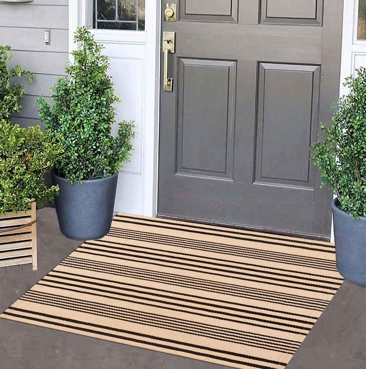 BUAGETUP Blue and White Layered Doormat,27.5x43.3inch Striped Outdoor Rug Hand Woven Cotton Indoor Outdoor Rug for Porch Layered