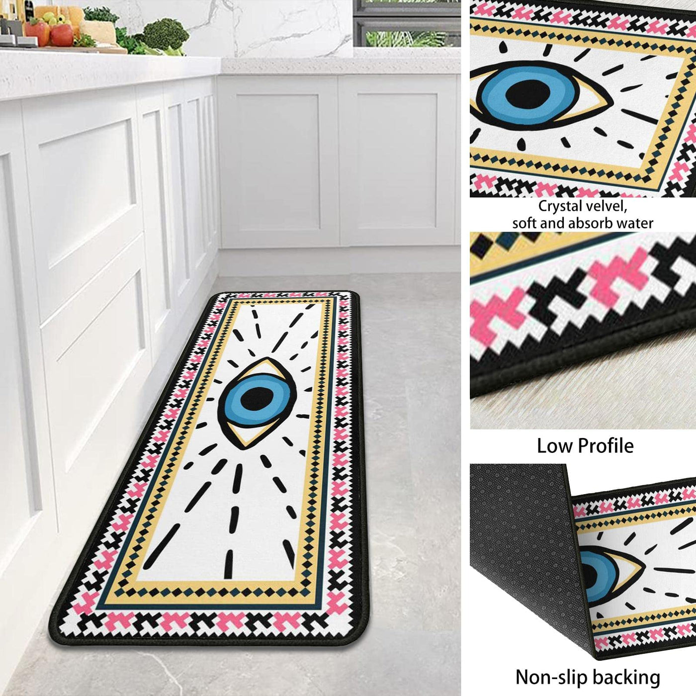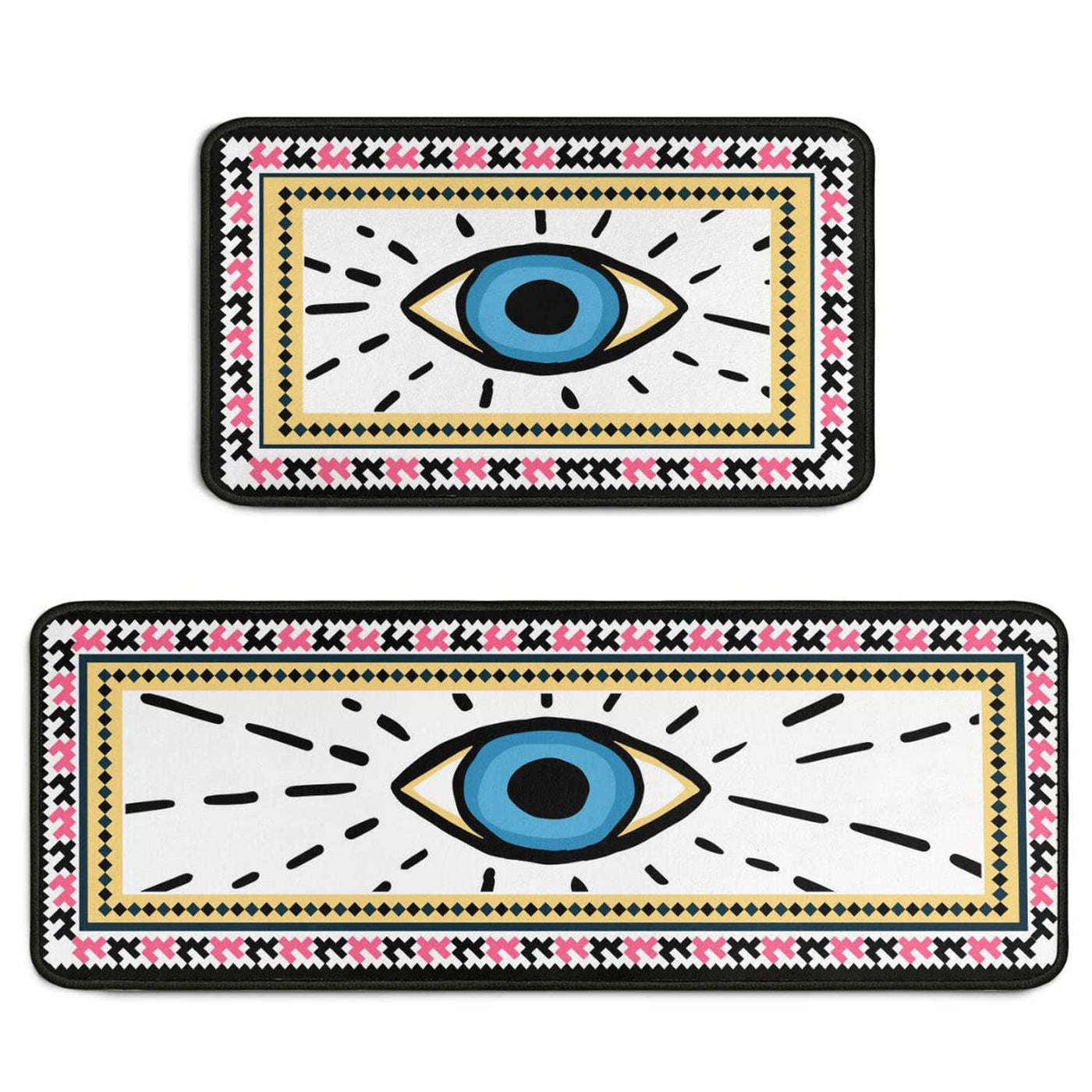 Evil Eye Kitchen Rugs Set Of 2 Boho Non-Slip Kitchen Rug And Mat Cushioned Kitchen Runner Rug Carpets For Floor Bedroom Farmhous