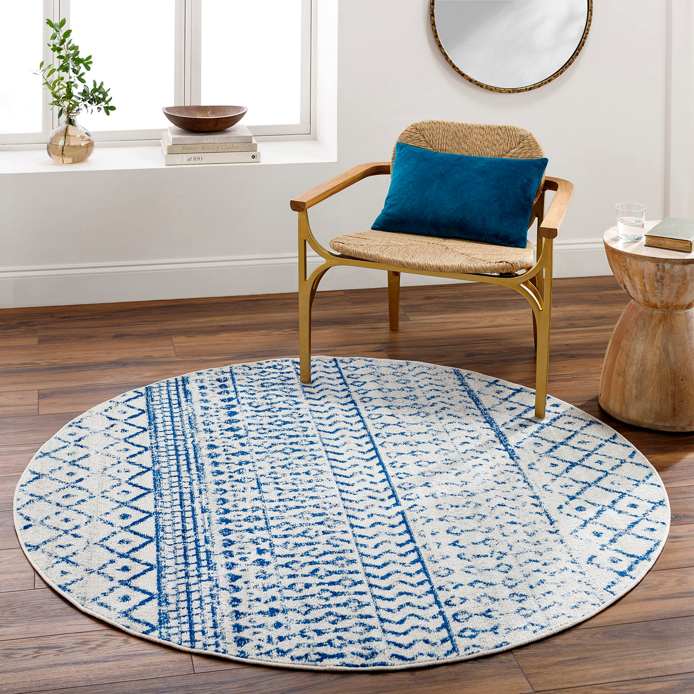 Livabliss Area Rugs - 4ft Round Chester Boho Moroccan Cream Rug for Living Room Bedroom - Blue Slate Gray Geometric Stain Resist
