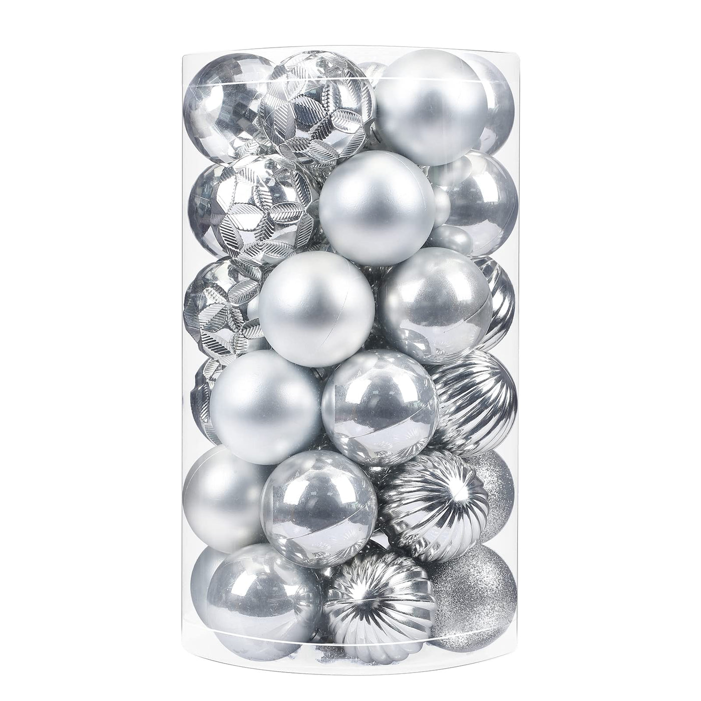 Luxtea 41ct Small Christmas Balls Shatterproof Hanging Decorations Set for Xmas Tree Garland Ornaments (1.57/40mm,Silver)