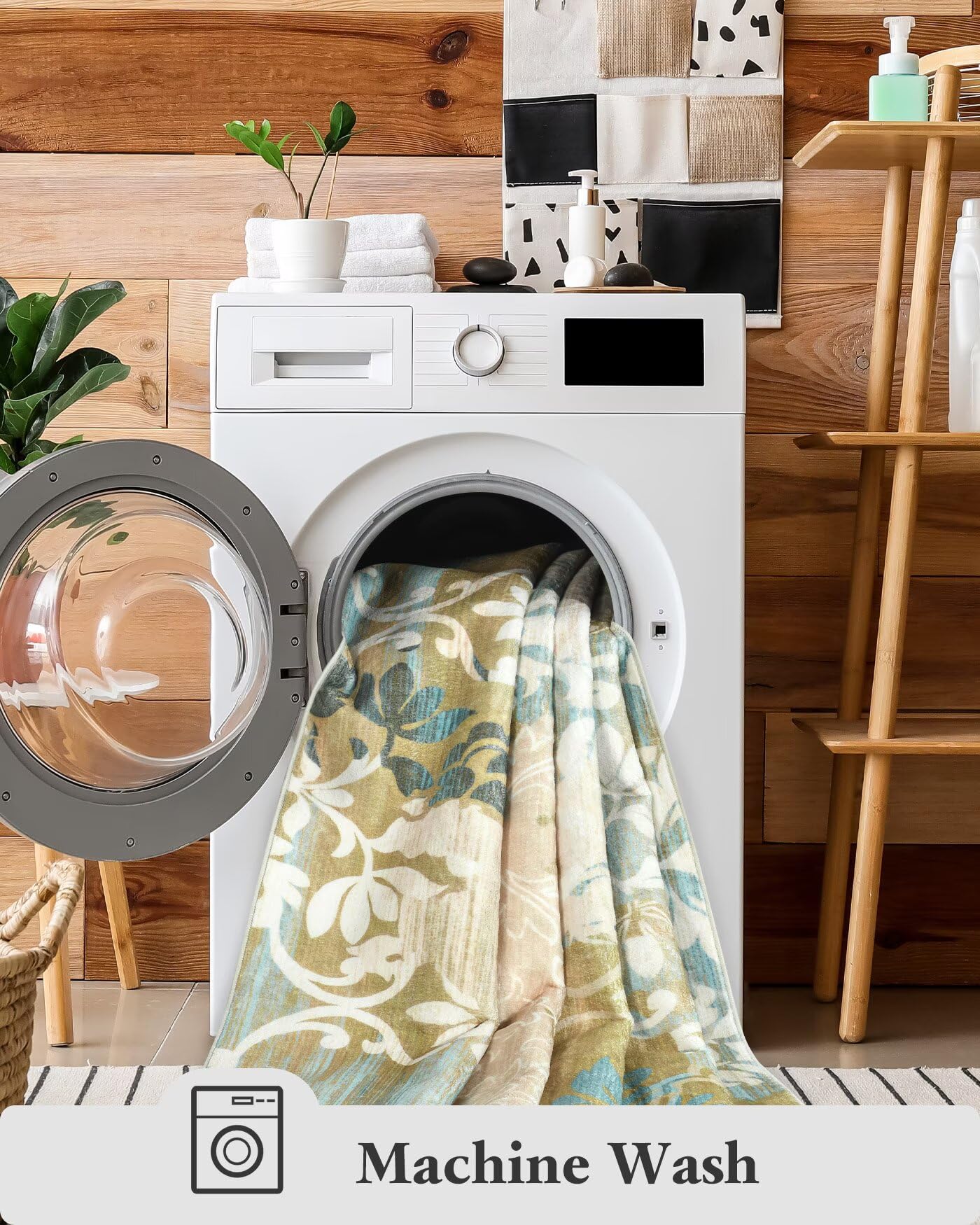 Macgace Washable Abstract Rug, 5x7 Willow Green and Blue Floral Area Rugs with Non-Slip Rubber Backed for Bedroom, Low Pile Mode