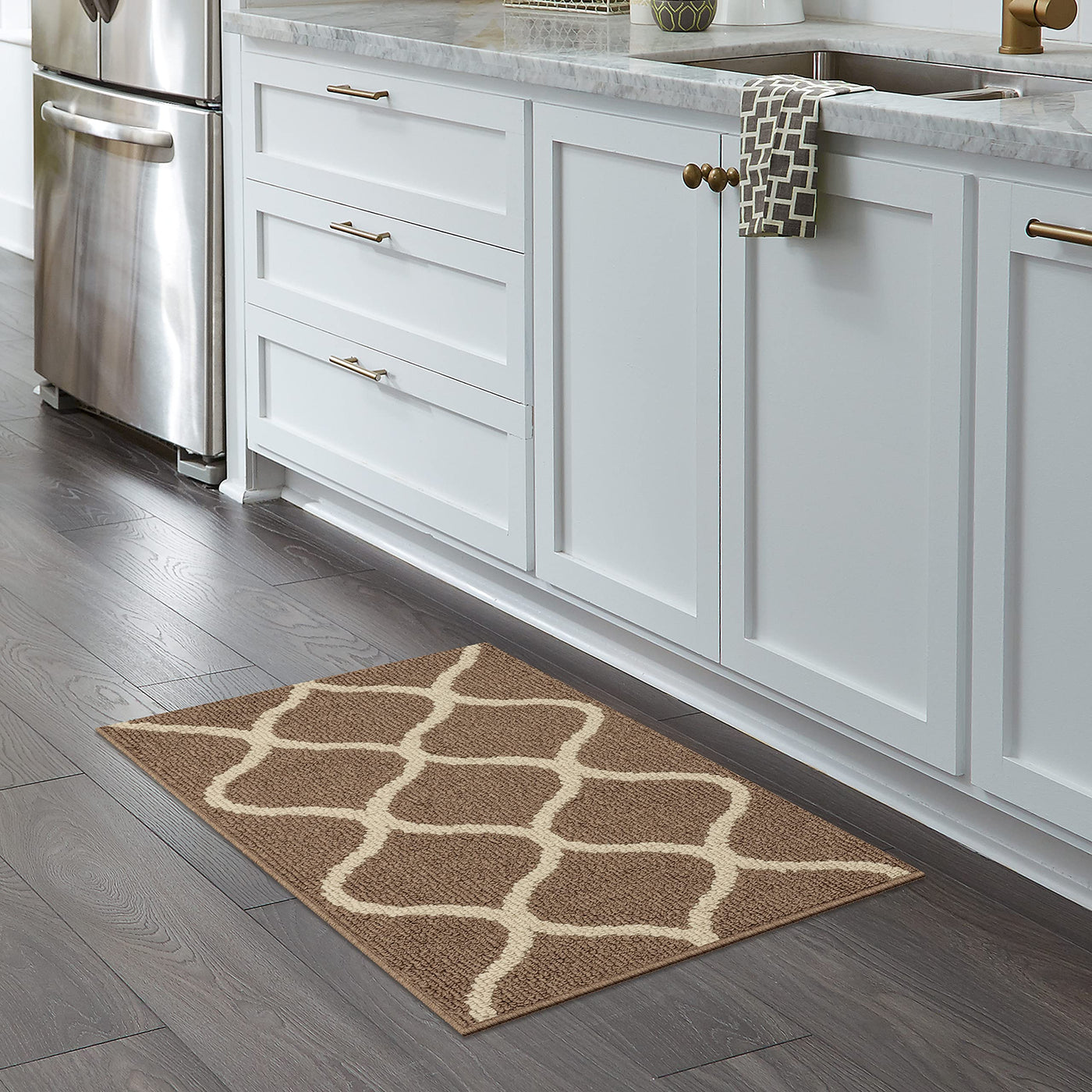 Maples Rugs Rebecca Contemporary Kitchen Rugs Non Skid Accent Area Carpet [Made in USA], 26 x 310, Grey/White