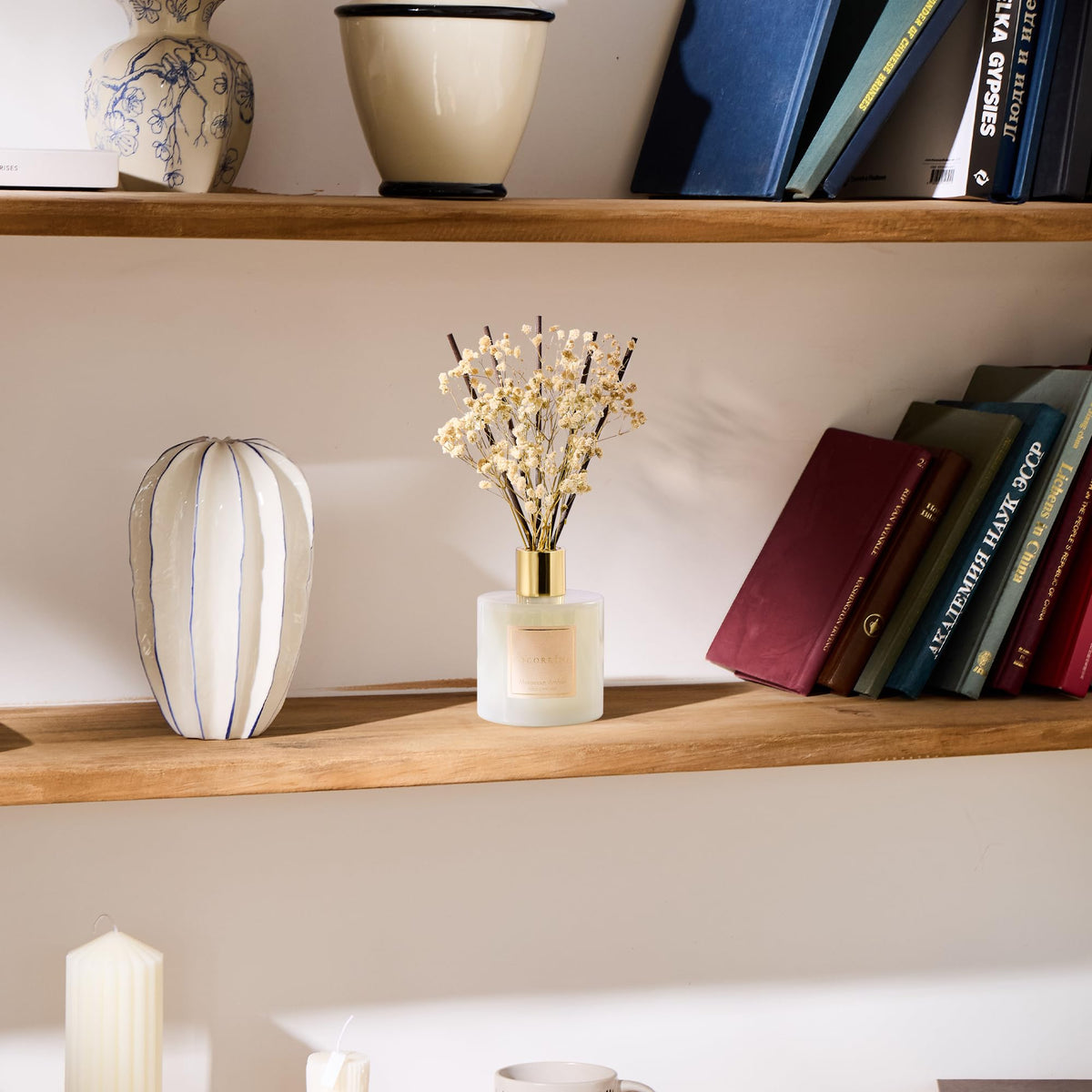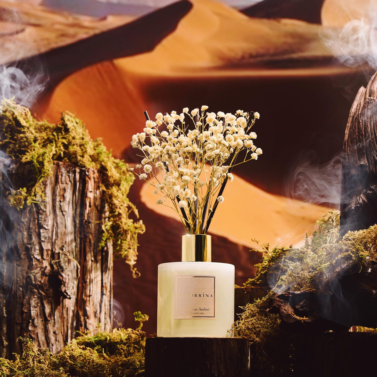 COCORR NA Reed Diffuser - Moroccan Amber 6.7 Fl.oz Reed Diffuser Set with Sticks & Preserved Babys Breath, Reed Diffuser for H