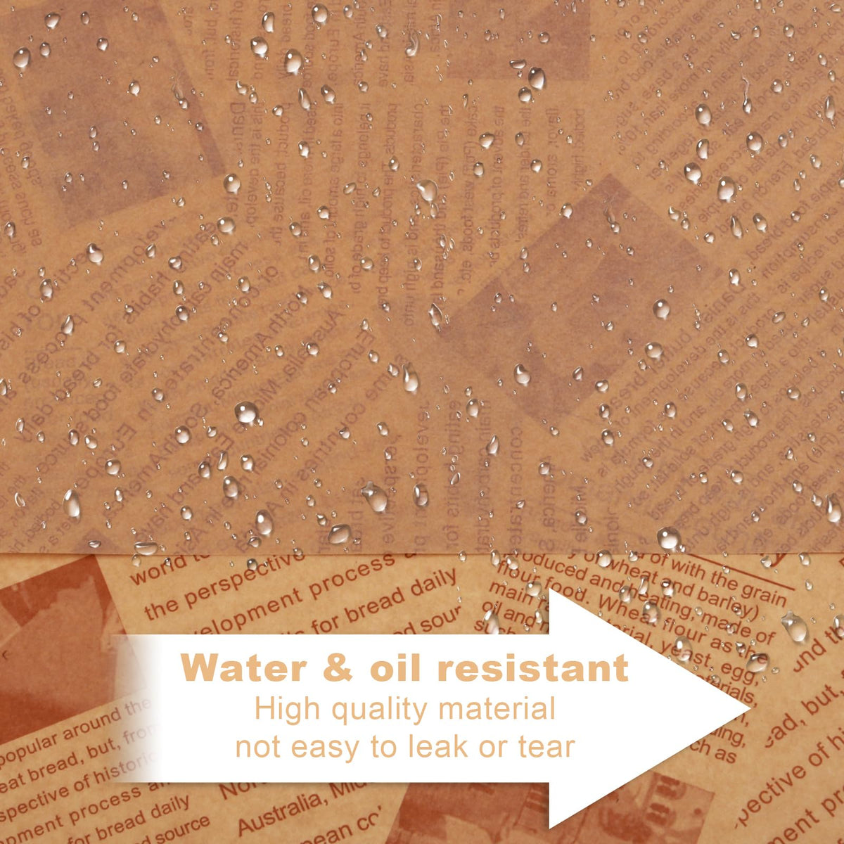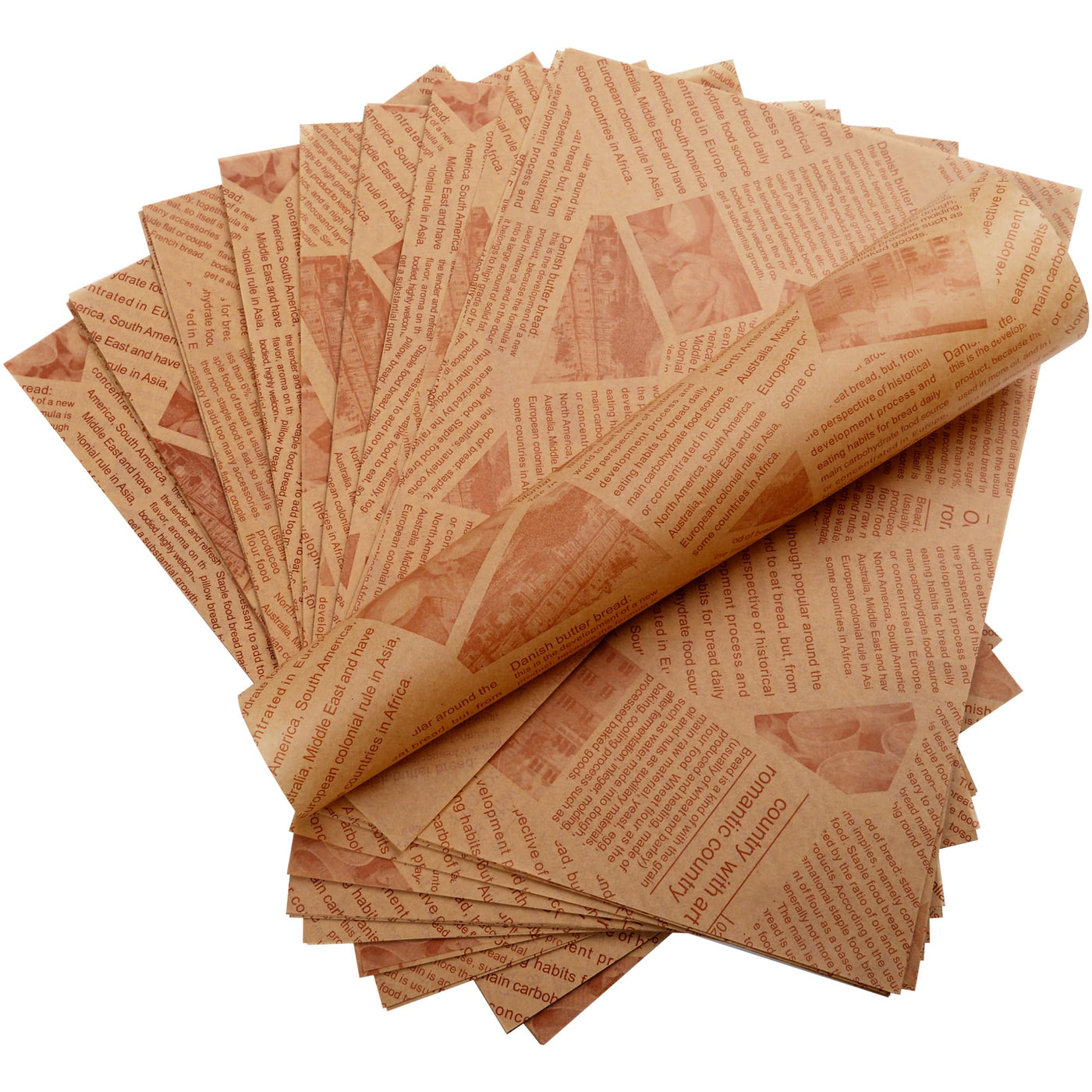 • Q: What style do the wax paper sheets feature? A: The sheets feature an old newspaper style print, adding a vintage look to your food presentation.