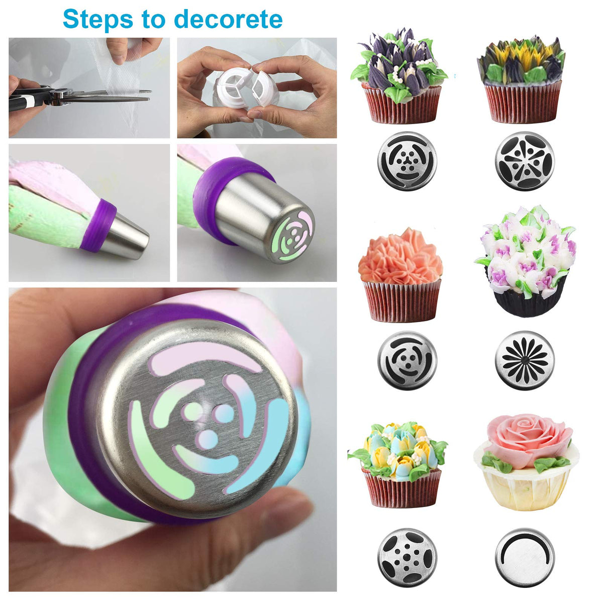 • Q: Can I use these piping tips for both cakes and cupcakes? A: Yes, these piping tips are versatile and can be used for decorating cakes, cupcakes, cookies, muffins, and pastries.