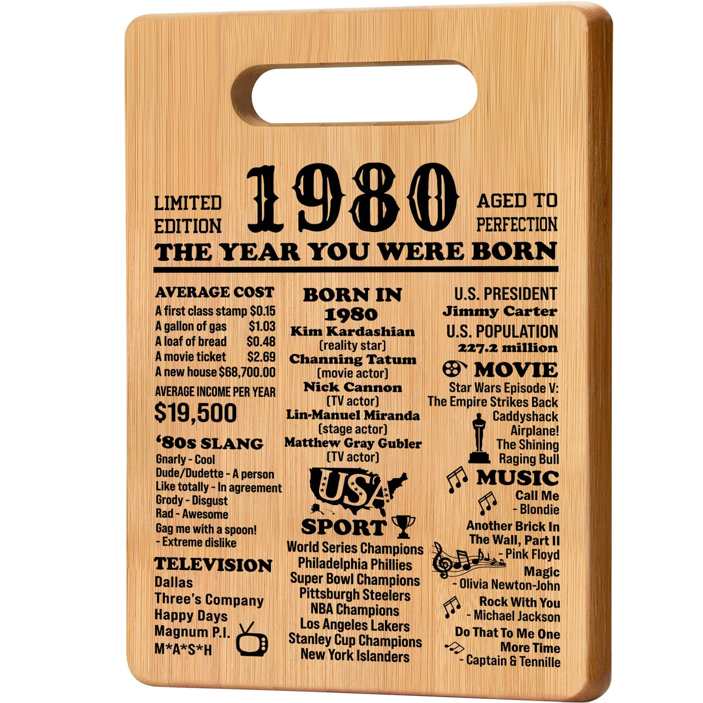 45th Birthday Gifts for Women Men, 1980 Birthday Gifts for Her Him Cutting Board Gift, Cool 45 Years Old Gifts 45 th Birthday Gift Ideas, Unique Back in 1980 Gifts for Man Male Female Wife Husband