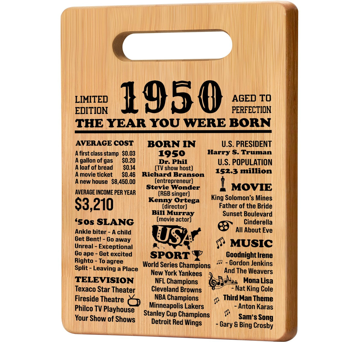 75th Birthday Gifts for Men & Women: Looking for a distinctive birthday gift? Skip the typical birthday presents and choose our 1950 themed cutting board gift for those who are turning 75 years old, celebrate the milestone and create happy memories on their birthday. Perfect Gift for your grandma,grandpa,mom, dad, sister, friends | 75th Birthday Gift Ideas: The cutting board is not merely a kitchen tool-it