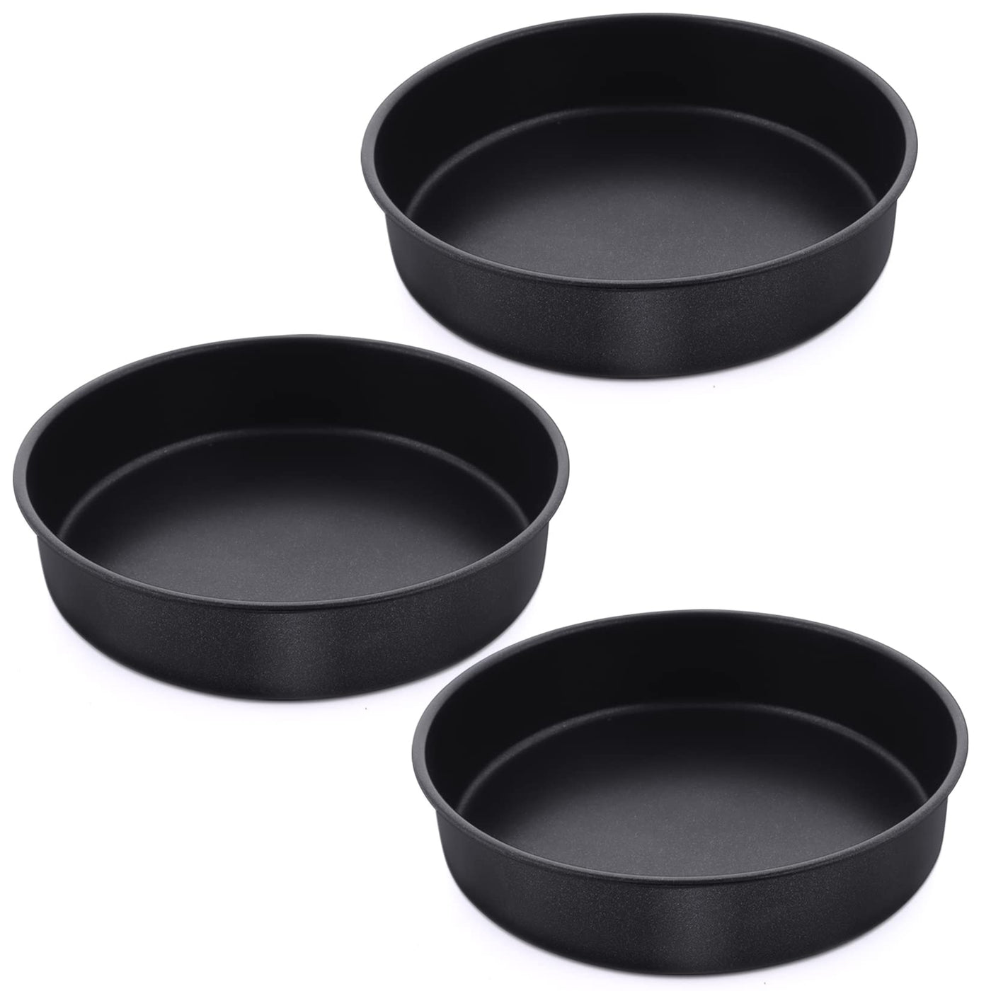 - Q: Are these cake pans non-stick? A: Yes, the cake pans have a non-stick coating on the exterior, which allows for easy removal of cakes without sticking to the bottoms or sides.