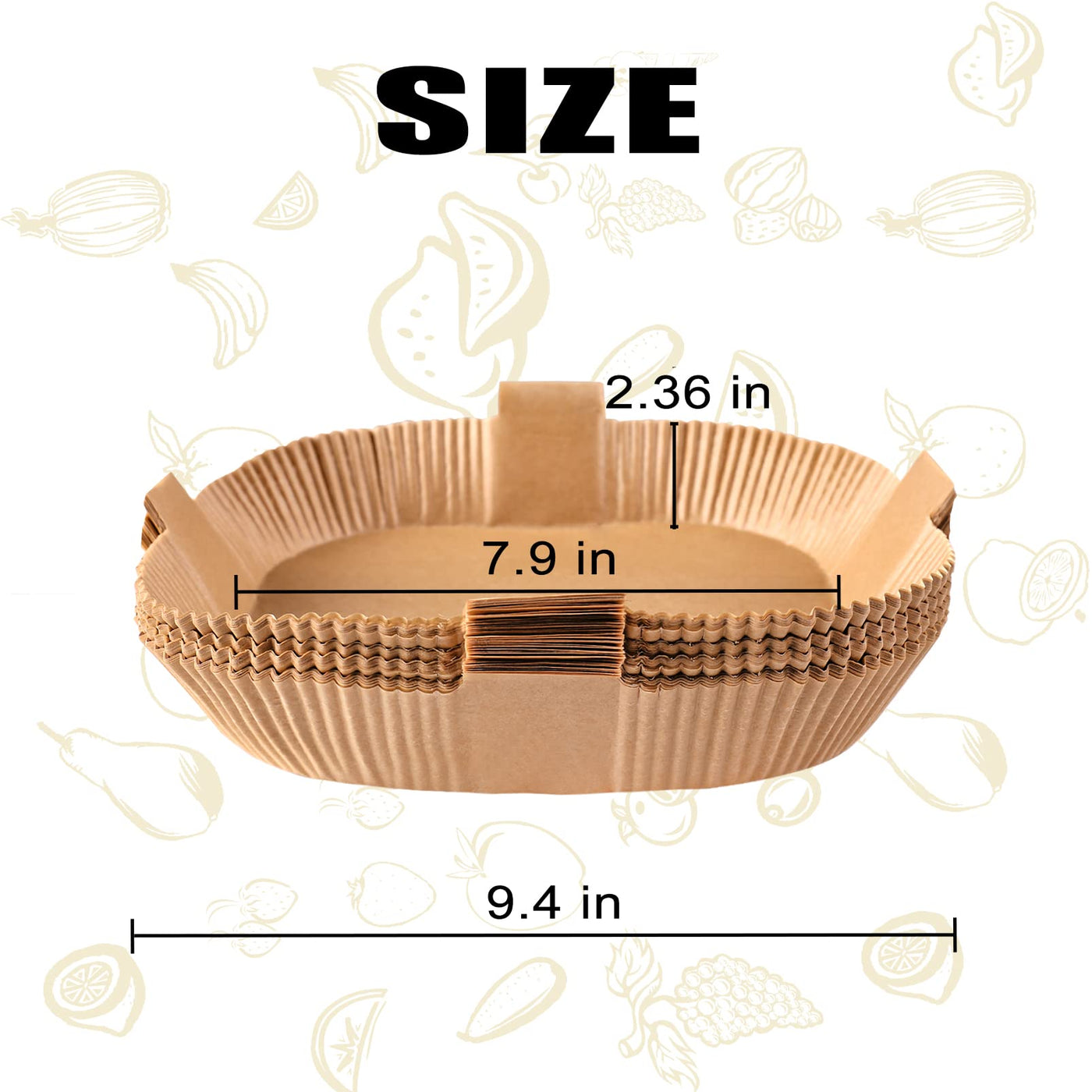 - Q: What are the dimensions of the Air Fryer Disposable Paper Liners? A: The Air Fryer Disposable Paper Liners measure 7.9 inches in a square shape.