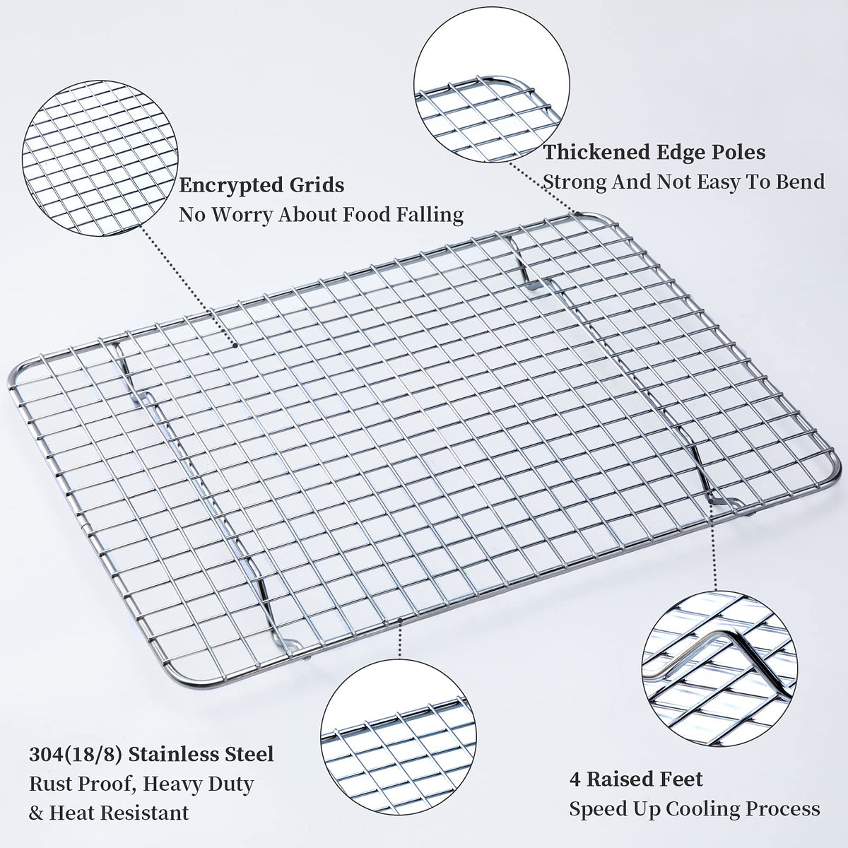 Aisoso Cooling Rack For Baking, Baking Rack With 18/8 Stainless Steel Bold Grid Wire, Multi Use Oven Rack Fit Quarter Sheet Pan,