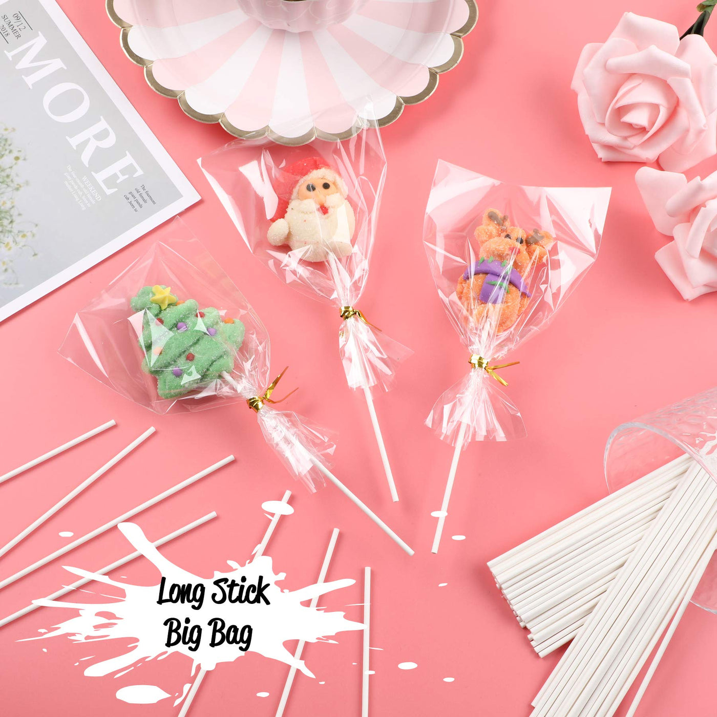 Augshy 300Pcs 6 Inches Cake Pops Making Tools 100Pcs Cake Pop Sticks 100Pcs Cake Pop Bags And 100Pcs Twist Ties (Thin Stick)