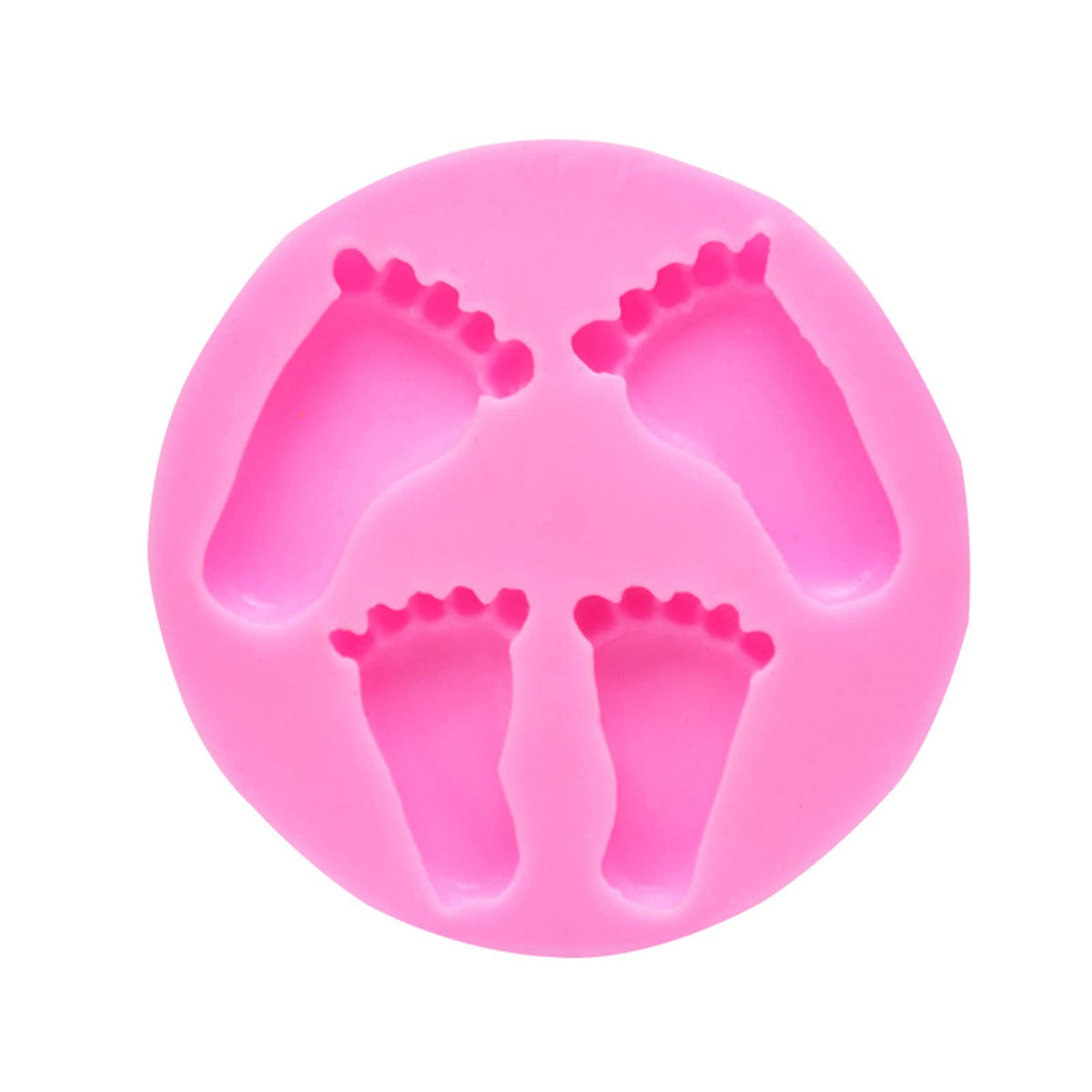Baby Footprint Silicone Molds For Baby Shower Cake Topper Decoration, 4 Cavities Fondant Mold For Diy Baking Cookie, Chocolate,