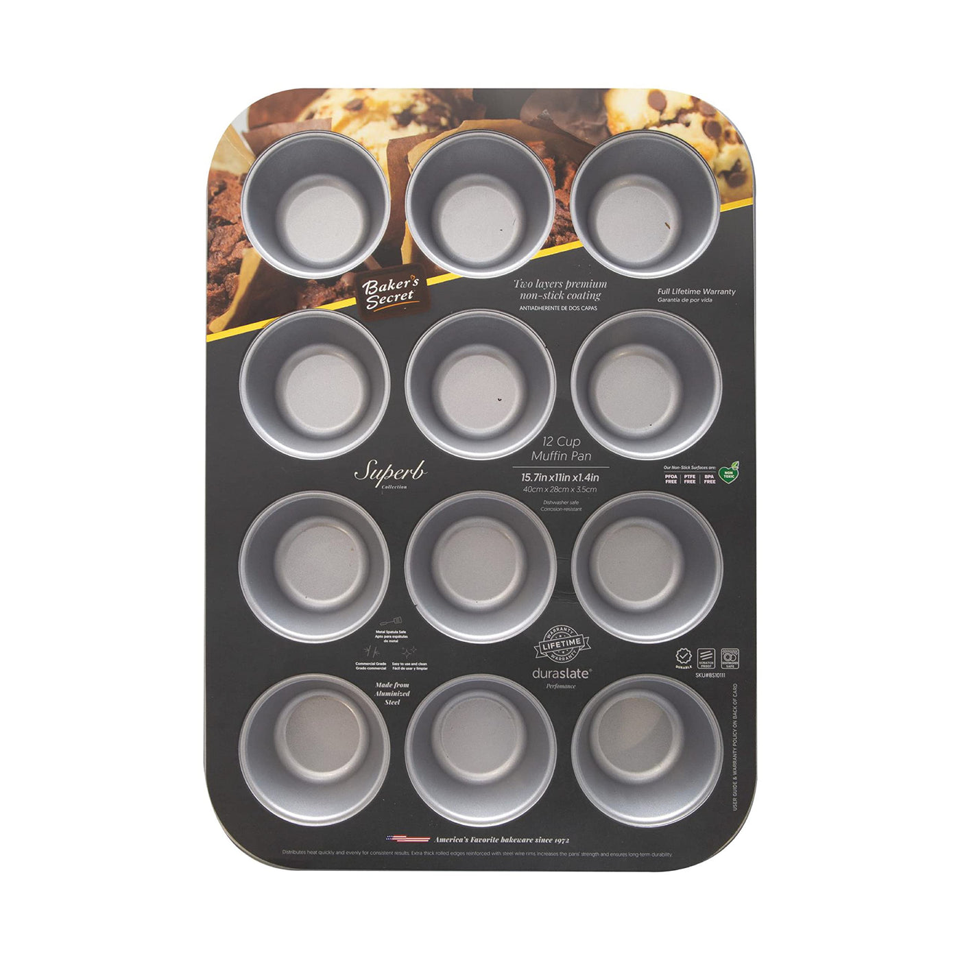 Baker'S Secret 12Cup Muffin Pan Cupcake Nonstick Pan - Aluminized Steel Pan Muffins Cupcakes 2 Layers Non Stick Coating Easy Rel