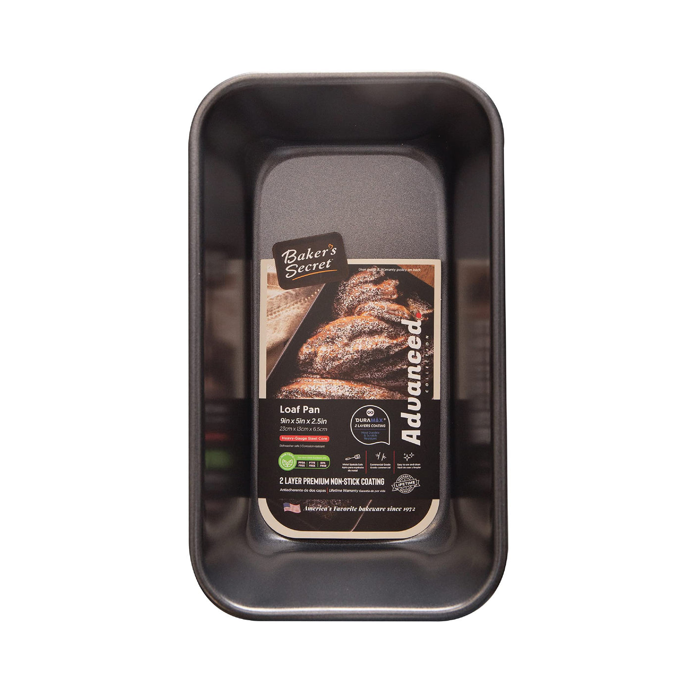 - Q: What is the size of the Baker's Secret Nonstick Loaf Pan? A: The Baker's Secret Nonstick Loaf Pan measures 9 inches by 5 inches, making it ideal for baking a variety of breads and meatloafs.