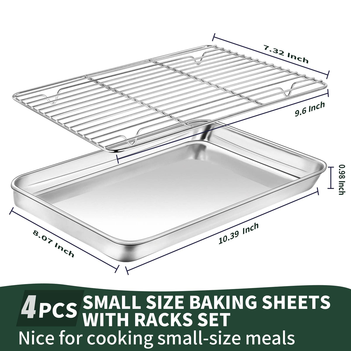 Baking Sheet With Cooling Rack Set(2 Baking Pans+2 Baking Racks), Cekee Stainless Steel Non Stick Small Cookie Sheet Set, Size 1