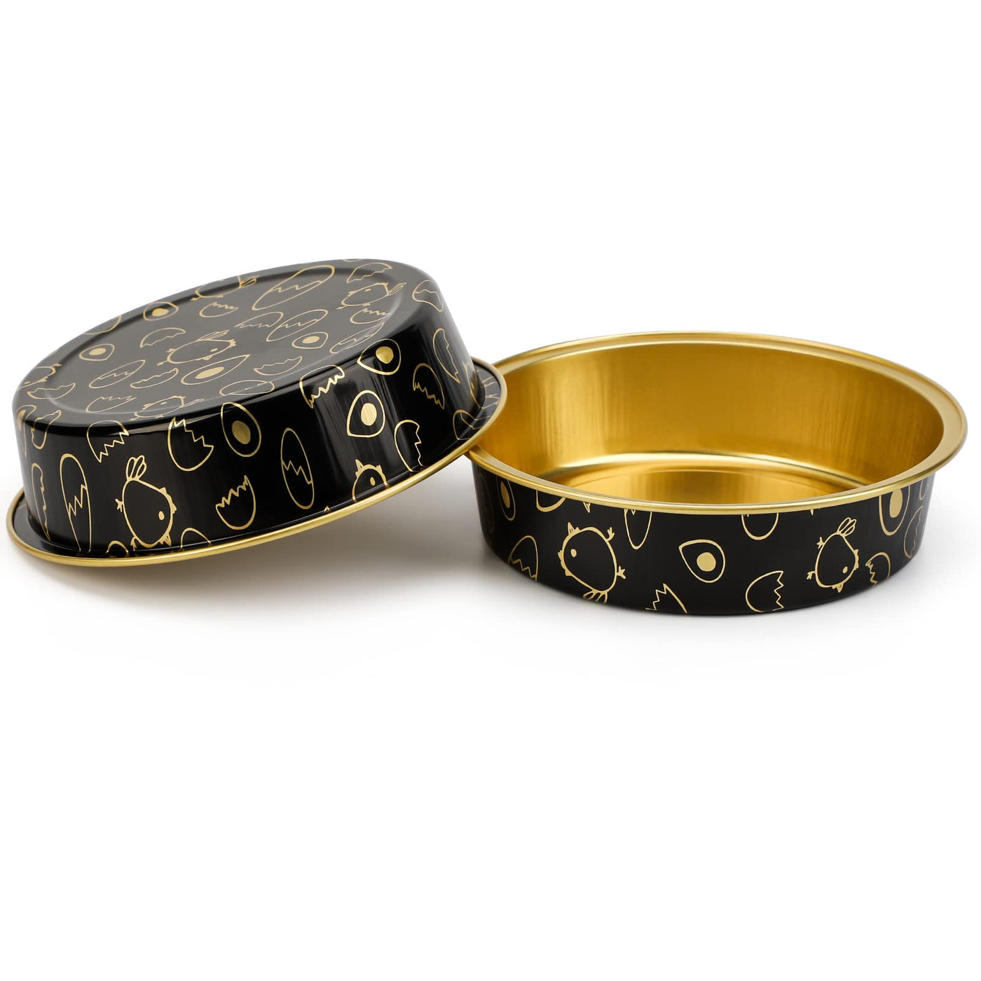Beasea Mini Tart Pan 100 Pack With Lids, 4 Inch 8Oz Gold Black Disposable Aluminum Baking Foil Tins Small Round Tart Containers