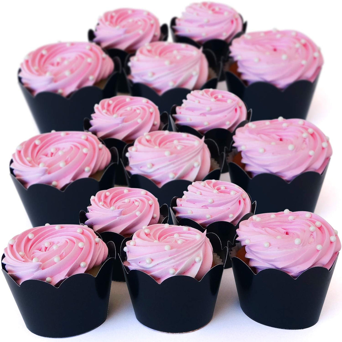 - Q: Do the cupcake wrappers have a glitter finish? A: Yes, the black and gold wrappers feature a faux glitter design.
