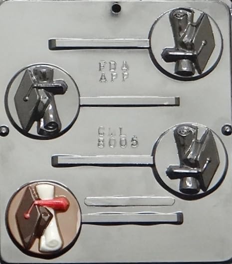 • Q: What is the size of each cavity in the Candy Molds N More Graduation Cap and Scroll Lollipop Mold? A: Each cavity in the Candy Molds N More Graduation Cap and Scroll Lollipop Mold is approximately 2.5 inches.