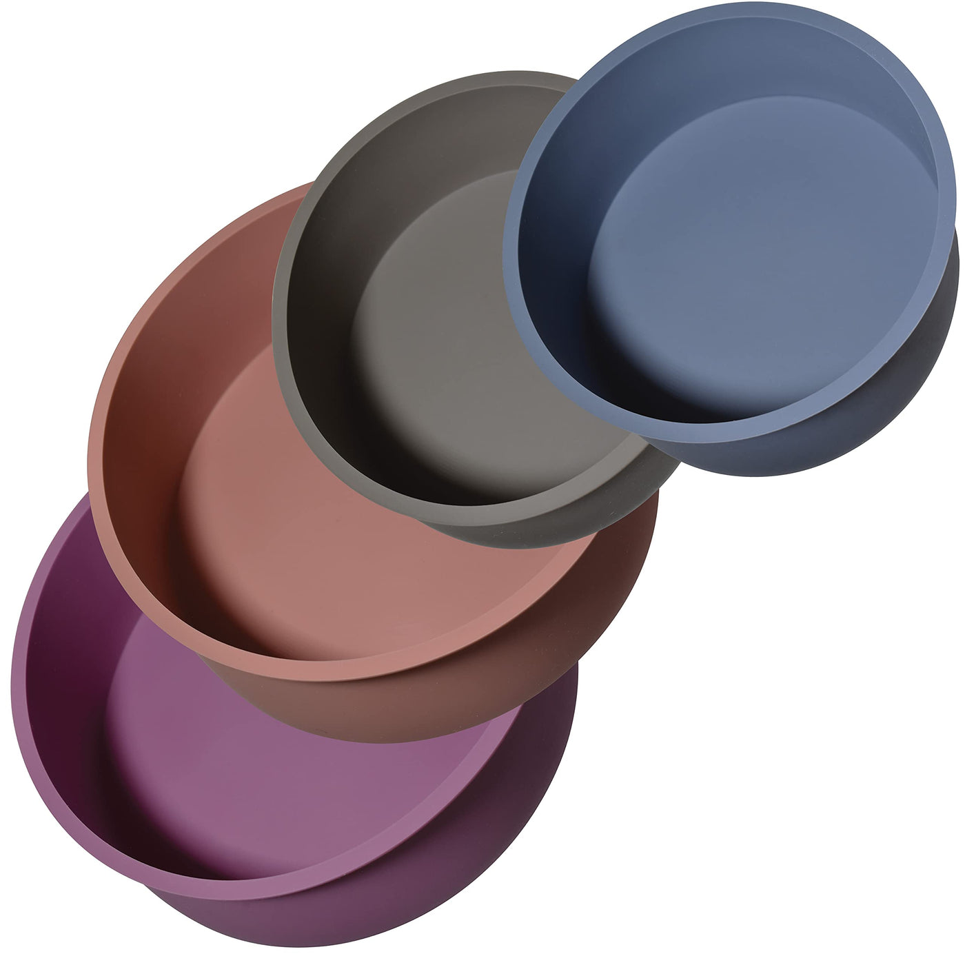 - Q: What are the color options available for the silicone cake pans? A: The pans come in four beautiful pastel shades: Slate, Pebble, Plum, and Sandstone.