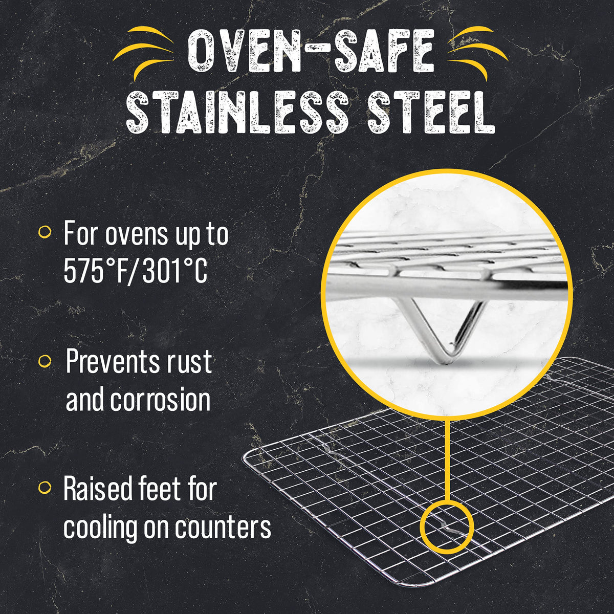 • Q: Is this cooling rack durable? A: Yes, the cooling rack is designed to be sturdy and will not warp or wobble during use.