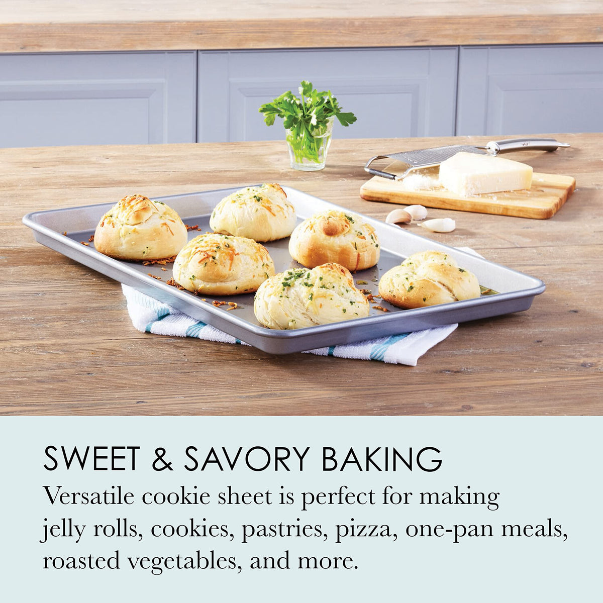 • Q: What types of food can I prepare using this pan? A: You can use this versatile pan for making jelly rolls, cookies, pastries, pizza, one-pan meals, and roasted vegetables.