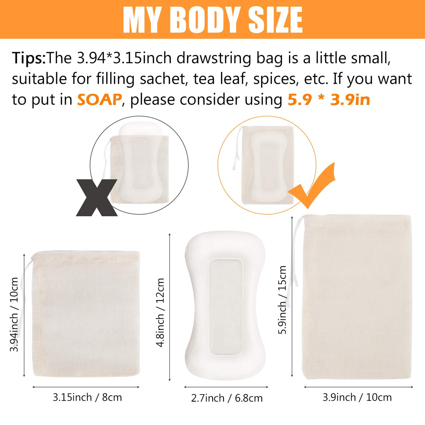 - Q: What are the dimensions of these muslin bags? A: Each muslin bag measures approximately 3.94 x 3.15 inches.