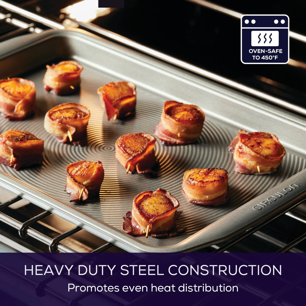 • Q: Can I pair these cookie sheets with other Circulon bakeware products? A: Yes, the Circulon bakeware set is designed to partner well with other products from the complete Circulon collection for enhanced cooking solutions.