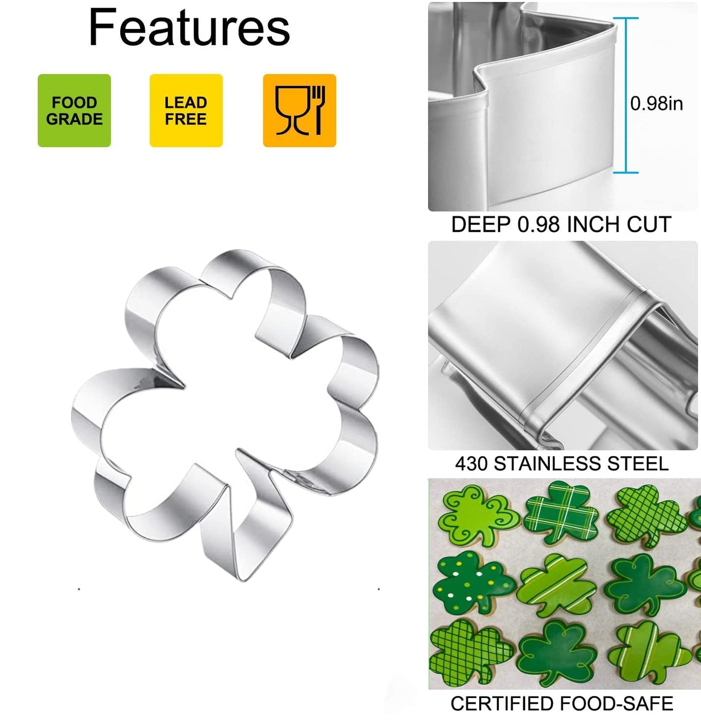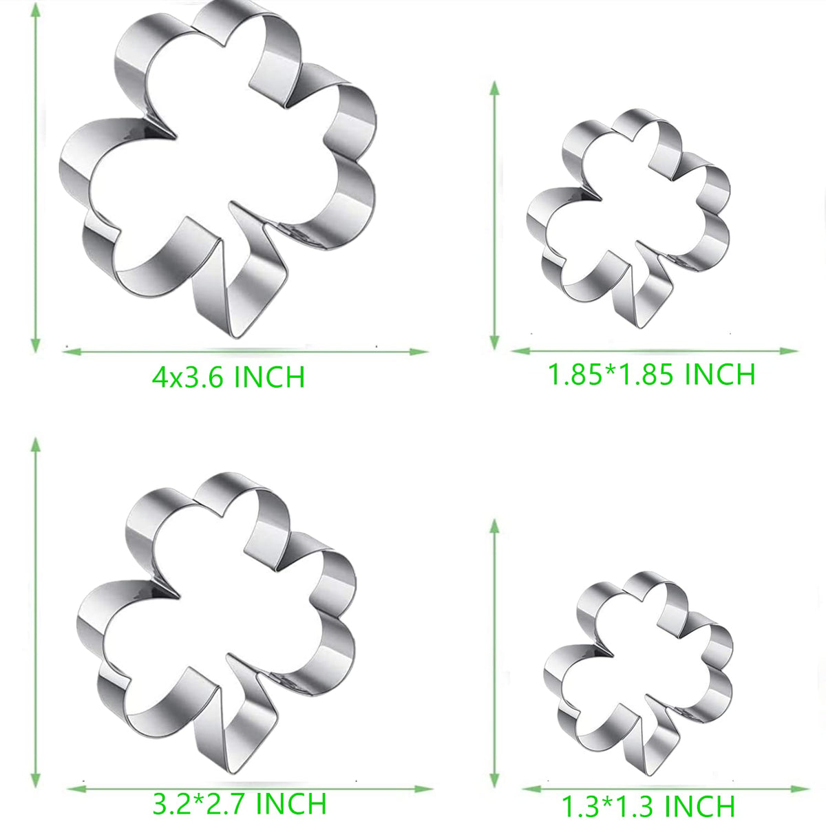 Clover Cookie Cutter Set, 4-Piece St. Patrick'S Day Shamrock Cookie Cutter Set, Metal Irish Holiday Party Supplies 4'', 3.2'', 1