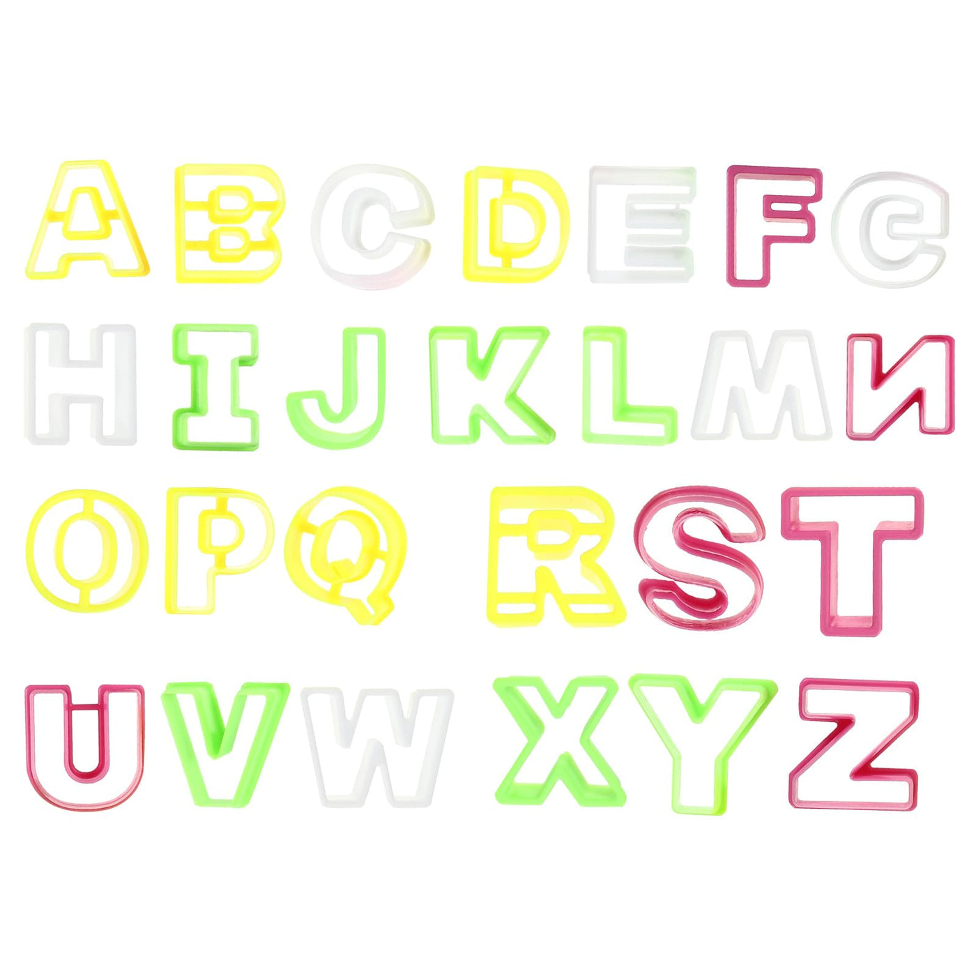 - Q: How many cookie cutters are included in the set? A: The set includes 26 cookie cutters, each shaped like a letter of the alphabet from A to Z.
