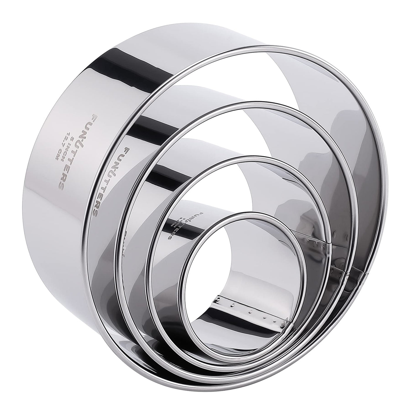Cookie Cutter Set, 4 Pc. Kit, Measuring 2'', 3'', 4'' And 5'', Round Metal Baking Rings For Pastry, Biscuits, And Dough Cutting,