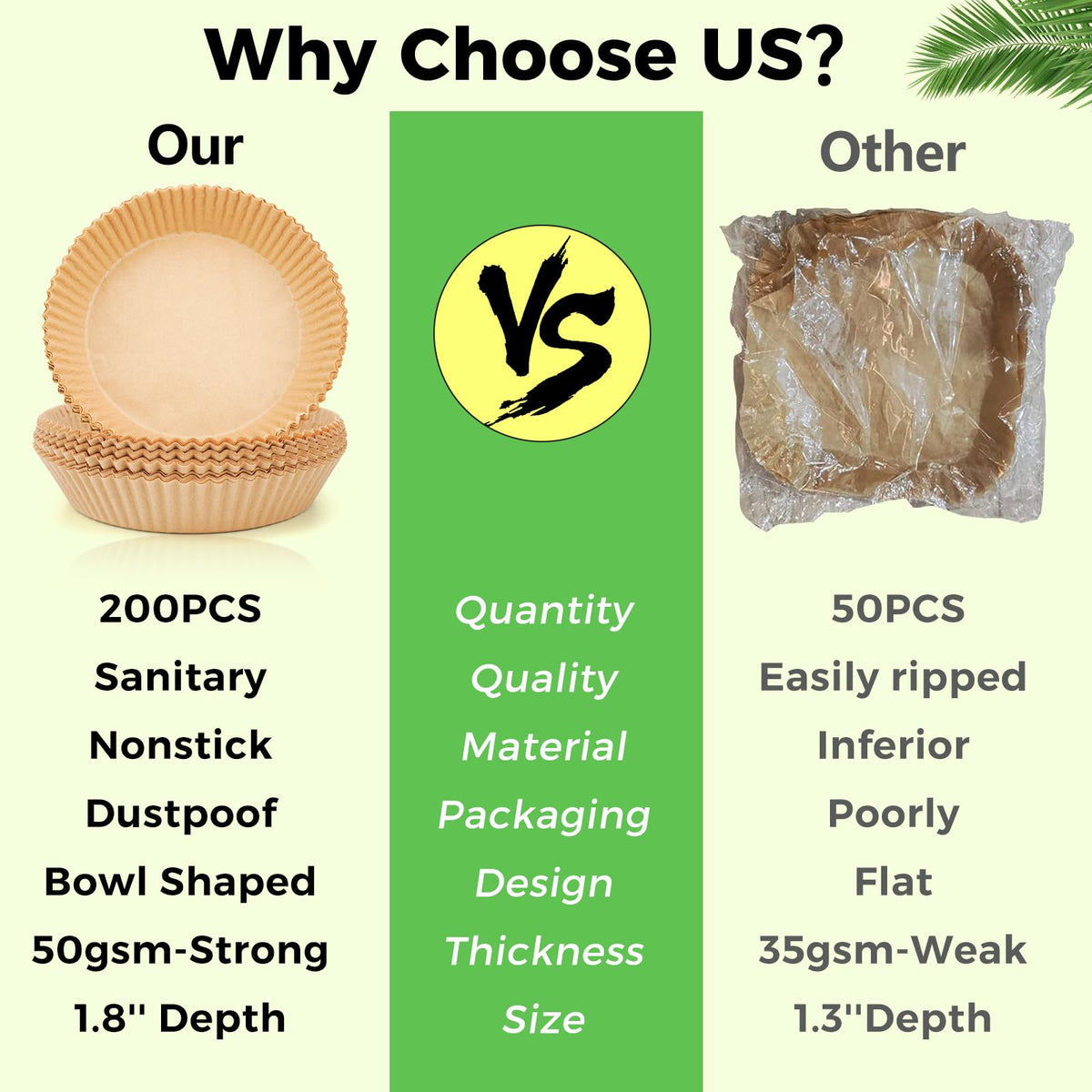 • Q: Are the air fryer liners environmentally friendly? A: The liners are made from raw wood materials, but since they are disposable, please ensure proper disposal to minimize environmental impact.