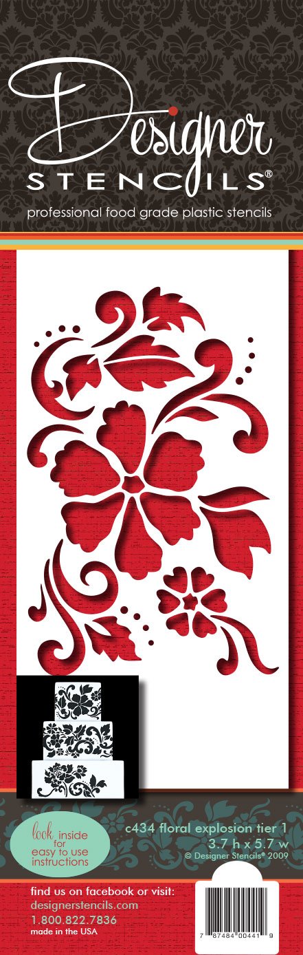 - Q: What material is the Designer Stencils C434 Floral Explosion Cake Stencil made of? A: The Designer Stencils C434 Floral Explosion Cake Stencil is made of durable, food-grade plastic.