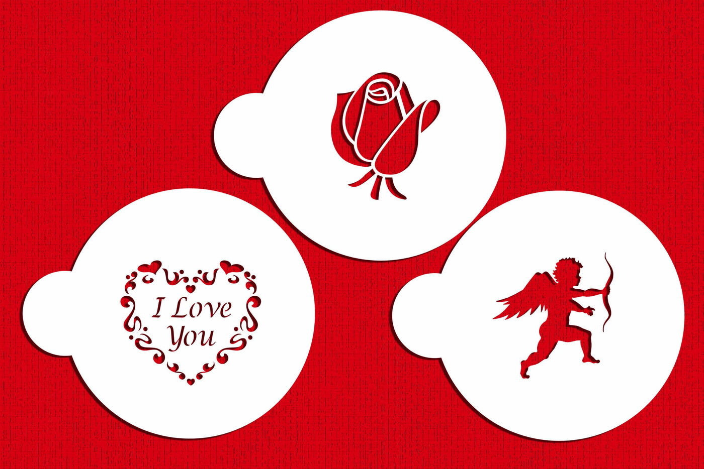 Designer Stencils I Love You Cookie Stencils, (Cupid, Rose, Heart), Beige/Semi-Transparent