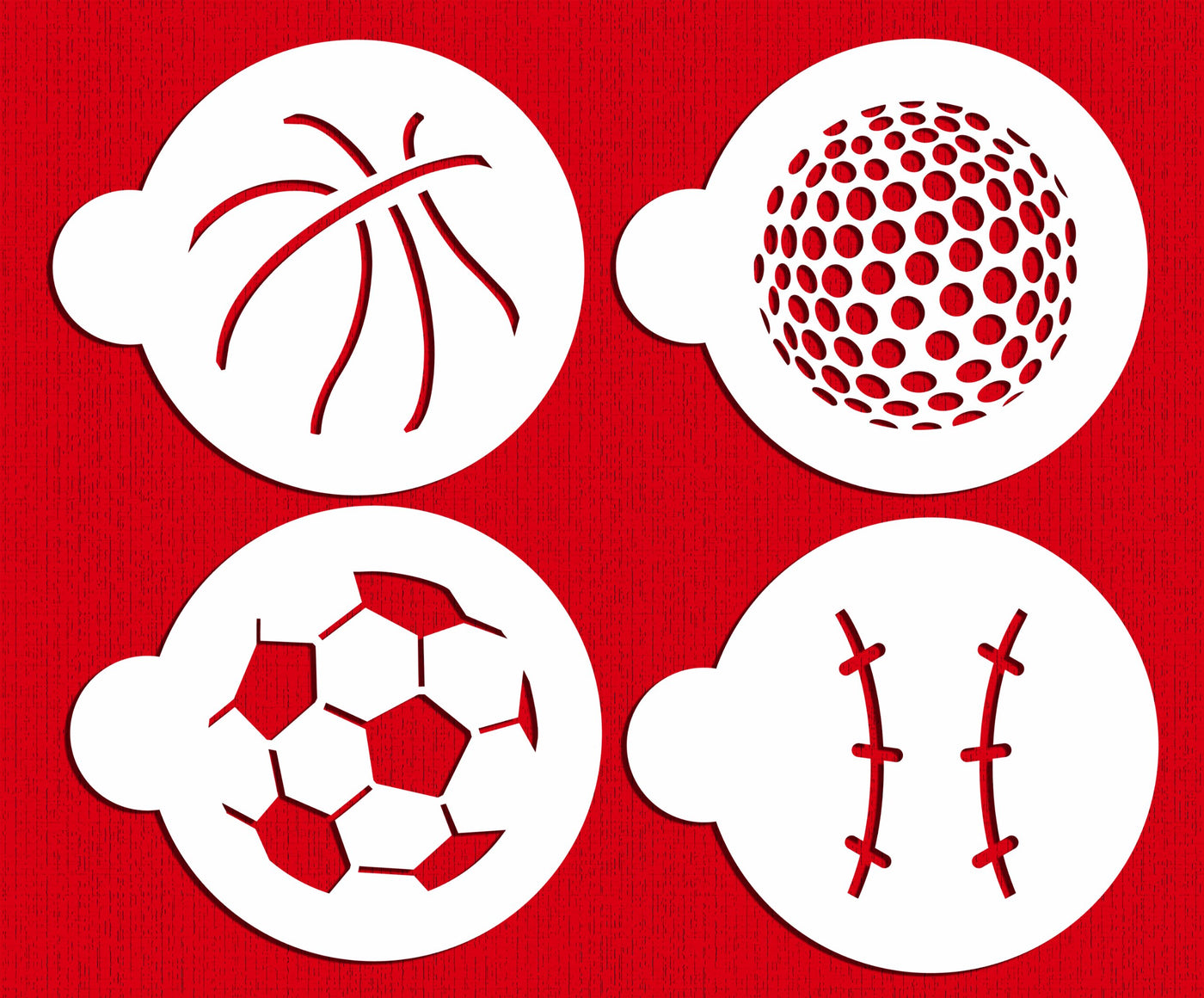 Designer Stencils Large Sports Ball Cookie Stencils (Basketball - Golf - Soccer - Baseball) , Beige/Semi-Transparent
