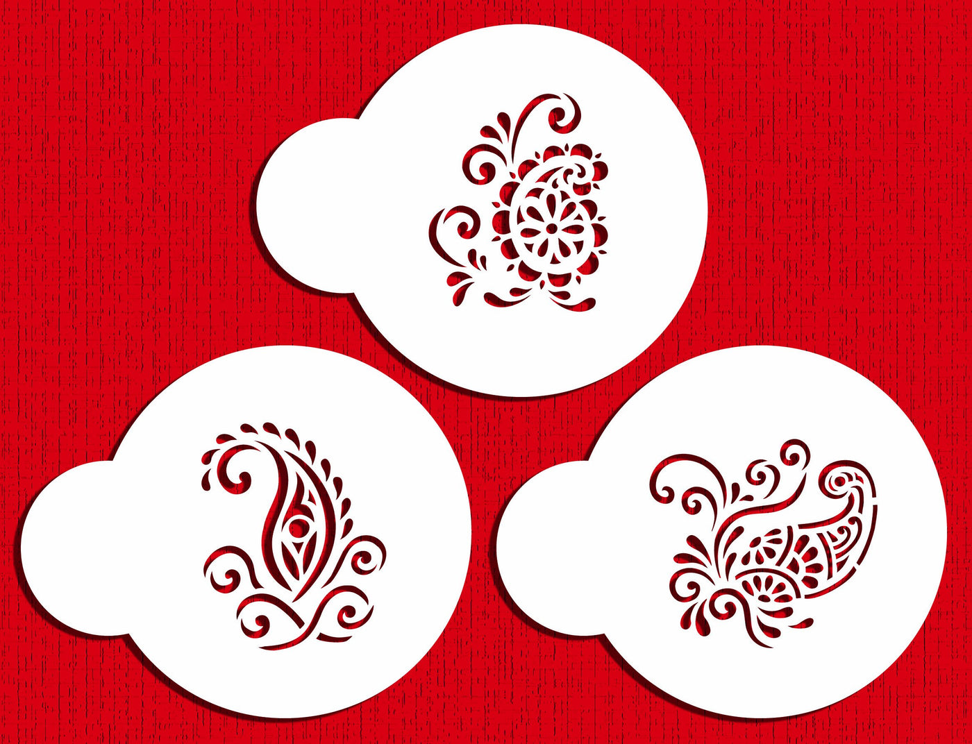 • Q: What size are the Designer Stencils Silk Paisley Cookie Stencils? A: The Designer Stencils Silk Paisley Cookie Stencils are designed for mini applications and fit within a 2 inch circle.