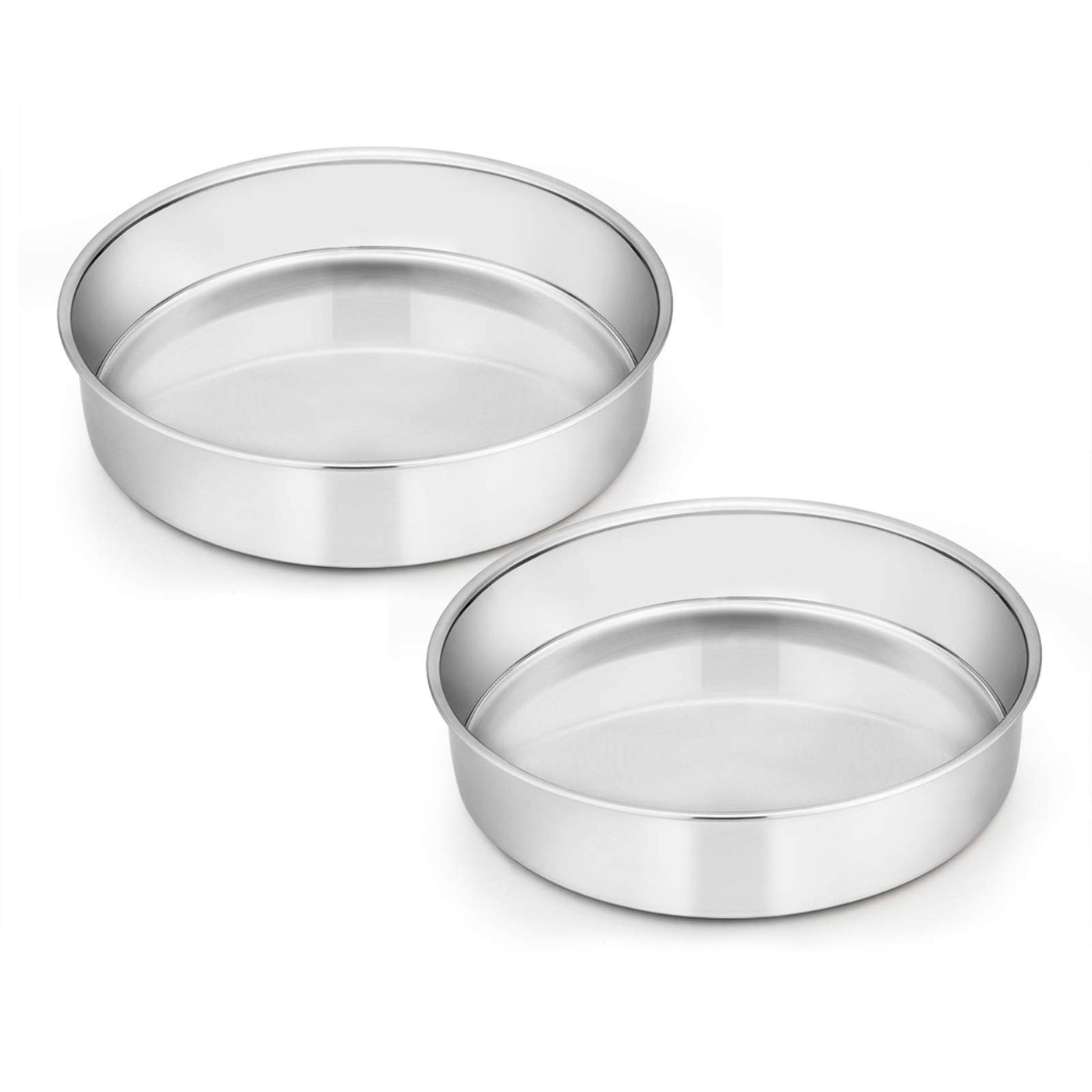 E-Far 8 Inch Cake Pan Set Of 2, Stainless Steel Round Layer Cake Baking Pans, Non-Toxic & Healthy, Mirror Finish & Dishwasher Sa