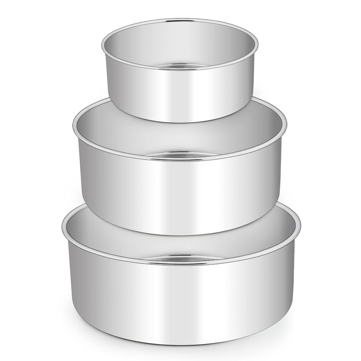 E-Far Deep Cake Pan Set Of 3 (6 Inch/8 Inch/9 Inch), Stainless Steel Round Layer Cake Baking Pans, Metal Tier Cake Tins For Wedd