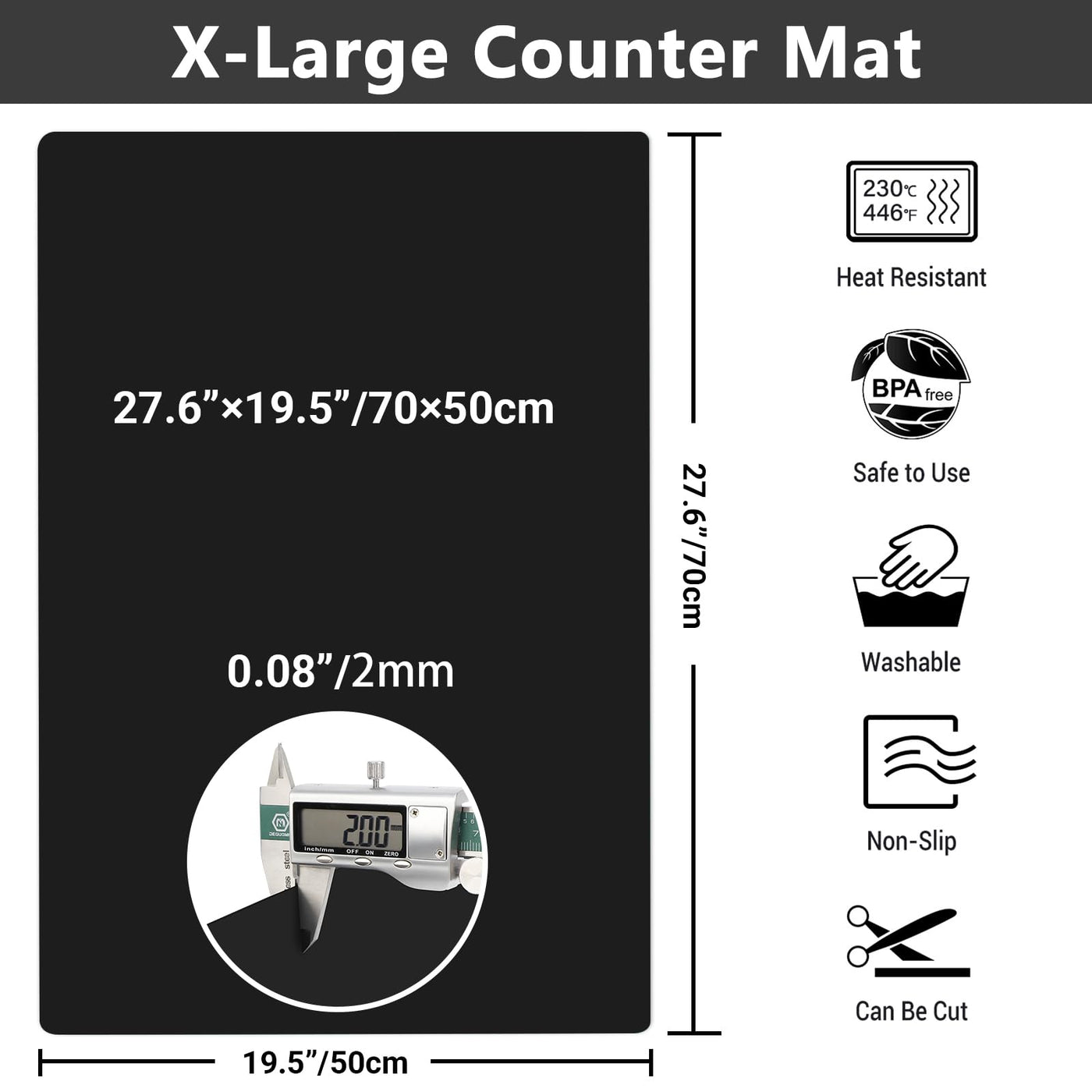 Ewen Silicone Mats For Kitchen Counter - 27.6X19.5 Inch Large Heat Resistant Mat Silicone Baking Mat 2Mm Thick Pastry Mat, Count