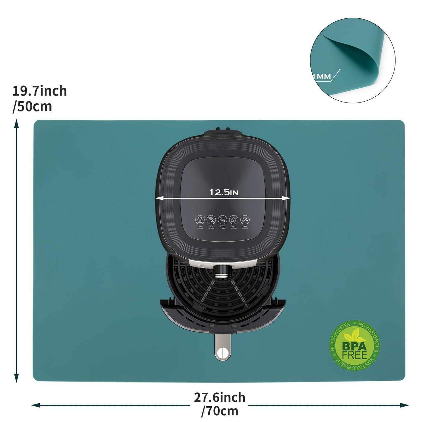 • Q: What are the dimensions of the QPIX DIGITAL Extra Large Silicone Countertop Mat? A: The dimensions of the QPIX DIGITAL Extra Large Silicone Countertop Mat are 27.6 inches by 19.7 inches.